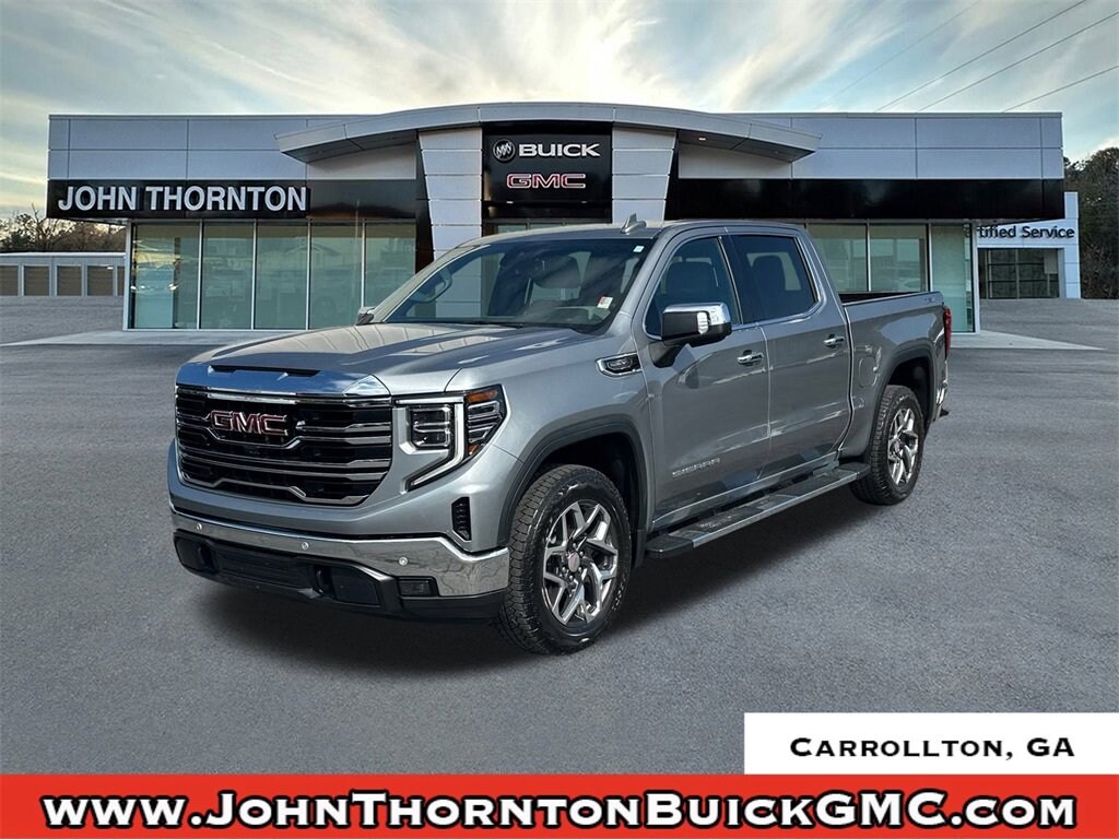 Thank you for considering this beautiful 2024 GMC Sierra 1500 SLT finished in stunning Sterling Metallic with Dark Walnut/Slate w/Perf Leather-Appointed Front Outboard Seat Trim.Odometer is 3988 miles below market average!Priced below KBB Fair Purchase Price!15/20 City/Highway MPGWe are your premier Carrollton, GA Cadillac dealership. John Thornton Cadillac Inc. Is family owned, and it is our goal to provide you with an excellent purchase and ownership experience. We also proudly serve Douglasville Cadillac customers. Whether you're searching for a new or used car near Douglasville or Bremen, researching financing options, or looking for a quick quote on a car, truck, or SUV, the friendly, yet professional staff at our Carrollton Cadillac dealership is ready to provide you with all the help you need. We are proud to serve Bremen Cadillac customers. We have served as your premier Cadillac dealer for the entire West Georgia area for over 45 years. Standard Suspension Package, Trailering Package (Hitch Guidance), 10-Speed Automatic, 4WD, Dark Walnut/Slate w/Perf Leather-Appointed Front Outboard Seat Trim, 10-Way Power Driver Seat Adjuster w/Lumbar, 10-Way Power Passenger Seat Adjuster w/Lumbar, 120-Volt Bed Mounted Power Outlet, 120-Volt Interior Power Outlet, 170 Amp Alternator, 2 Charge/Data USB Ports, 2 Type-C Charge-Only Rear USB Ports, 4-Wheel Disc Brakes, 6 Speakers, 6-Speaker Audio System Feature, ABS brakes, Air Conditioning, Alloy wheels, AM/FM radio: SiriusXM with 360L, Apple CarPlay/Android Auto, Auto High-beam Headlights, Auto-dimming door mirrors, Auto-dimming Rear-View mirror, Auto-Locking Rear Differential, Automatic Emergency Braking, Automatic temperature control, Auxiliary External Transmission Oil Cooler, Brake assist, Buckle to Drive, Bumpers: chrome, Chrome Header & Chrome Grille Insert Bars, Color-Keyed Carpeting Floor Covering, Compass, Deep-Tinted Glass, Delay-off headlights, Driver door bin, Driver Memory, Driver vanity mirror, Dual front impact airbags, Dual front side impact airbags, Electric Rear-Window Defogger, Electronic Stability Control, Following Distance Indicator, Forward Collision Alert, Front 40/20/40 Split-Bench Seat, Front anti-roll bar, Front Center Armrest w/Storage, Front dual zone A/C, Front fog lights, Front Frame-Mounted Black Recovery Hooks, Front Pedestrian Braking, Front Rain-Sensing Wipers, Front reading lights, Front wheel independent suspension, Fully automatic headlights, GMC Connected Access Capable, HD Rear Vision Camera, Heated door mirrors, Heated Driver & Front Outboard Passenger Seating, Heated front seats, Heated steering wheel, Illuminated entry, IntelliBeam Automatic High Beam On/Off, Keyless Open & Start, Lane Keep Assist w/Lane Departure Warning, LED Cargo Area Lighting, Low tire pressure warning, Manual Tilt-Wheel & Telescoping Steering Column, Memory seat, Navigation System, Occupant sensing airbag, OnStar & GMC Connected Services Capable, Outside temperature display, Overhead airbag, Overhead console, Panic alarm, Passenger door bin, Passenger vanity mirror, Perf Leather-Appointed Front Outboard Seat Trim, Perimeter Lighting, Power Door Locks, Power door mirrors, Power driver seat, Power Front Passenger Windows w/Express Up/Down, Power Front Windows w/Driver Express Up/Down, Power passenger seat, Power Rear Windows w/Express Down, Power steering, Power windows, Premium audio system: GMC Infotainment System, Push Button Start, Radio data system, Radio: Premium GMC Infotainment Audio System, Rain sensing wipers, Rear reading lights, Rear seat center armrest, Rear step bumper, Rear Wheelhouse Liners, Rear window defroster, Remote keyless entry, Remote Vehicle Starter System, Security system, SiriusXM w/360L, Speed control, Speed-sensing steering, Split folding rear seat, Steering Wheel Audio Controls, Steering wheel mounted audio controls, Tachometer, Telescoping steering wheel, Theft Deterrent System (Unauthorized Entry), Tilt
