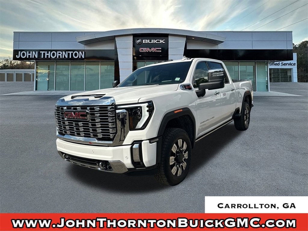 We are your premier Carrollton, GA Cadillac dealership. John Thornton Cadillac Inc. Is family owned, and it is our goal to provide you with an excellent purchase and ownership experience. We also proudly serve Douglasville Cadillac customers. Whether you're searching for a new or used car near Douglasville or Bremen, researching financing options, or looking for a quick quote on a car, truck, or SUV, the friendly, yet professional staff at our Carrollton Cadillac dealership is ready to provide you with all the help you need. We are proud to serve Bremen Cadillac customers. We have served as your premier Cadillac dealer for the entire West Georgia area for over 45 years. Denali Reserve Package (Power Sunroof), Preferred Equipment Group 5SA (120-Volt Bed Mounted Power Outlet, 120-Volt Instrument Panel Power Outlet, 2 Charge-Only Rear USB Ports, 2 Charge/Data USB Ports Inside Center Console, 2 USB Ports, 2-Speed Active Transfer Case, Bed View Camera w/2 Trailer Camera Provisions, Bose Premium 7-Speaker Sound System, Deep-Tinted Glass, Electric Rear-Window Defogger, Floor-Mounted Center Console, Front Rain-Sensing Wipers, HD Surround Vision, Heated 2nd Row Outboard Seats, Heated Driver & Front Outboard Passenger Seats, Keyless Open & Start, LED Cargo Area Lighting, LED Smoked Amber Roof Marker Lamps, Manual Tilt-Wheel/Telescoping Steering Column, OnStar Services Capable, Polished Exhaust Tip, Power Front Passenger Windows w/Express Up/Down, Power Sliding Rear Window w/Defogger, Push Button Start, Rear Cross Traffic Alert, Rear Wheelhouse Liners, Remote Vehicle Starter System, Safety Alert Seat, Signature Chrome Denali Grille, SiriusXM w/360L Trial Subscription, Spray-On Pickup Bedliner w/GMC Logo, Steering Wheel Audio Controls, Trailer Cam Provisions & Trailer Viewing Software, Trailer Side Blind Zone Alert, Ultrasonic Front & Rear Park Assist, Unauthorized Entry Theft-Deterrent System, Universal Home Remote, Ventilated Driver & Front Passenger Seats, Wireless Charging, and Wireless Phone Projection), Technology Package (Inside Rearview Auto-Dimming Rear Camera Mirror and Multicolor 15 Diagonal Head-Up Display), X31 Off-Road Package (Hill Descent Control), 10-Speed Automatic, 4WD, Black Leather, 12-Way Power Driver Seat Adjuster w/Lumbar, 12-Way Power Passenger Seat Adjuster w/Lumbar, 220-Amp Alternator, 4-Wheel Disc Brakes, 5th Wheel & Gooseneck Trailer Wiring Provisions, 7 Speakers, ABS brakes, Air Conditioning, Alloy wheels, AM/FM radio: SiriusXM with 360L, Apple CarPlay/Android Auto, Auto High-beam Headlights, Auto-dimming door mirrors, Auto-dimming Rear-View mirror, Automatic Emergency Braking, Automatic temperature control, Brake assist, Buckle to Drive, Bumpers: body-color, Compass, Delay-off headlights, Driver door bin, Driver Memory, Driver vanity mirror, Dual front impact airbags, Dual front side impact airbags, Electronic Stability Control, Emergency communication system: OnStar, Engine Block Heater, Exhaust Brake, Following Distance Indicator, Forge Perforated Leather-Appointed Front Seat Trim, Forward Collision Alert, Front anti-roll bar, Front Bucket Seats, Front Center Armrest, Front dual zone A/C, Front fog lights, Front License Plate Kit, Front Pedestrian Braking, Front reading lights, Front wheel independent suspension, Fully automatic headlights, Garage door transmitter, Genuine wood dashboard insert, Genuine wood door panel insert, Heated door mirrors, Heated front seats, Heated rear seats, Heated steering wheel, Heavy-Duty 80 Amp Battery, Hitch Guidance w/Hitch View, Illuminated entry, In-Vehicle Trailering System App, IntelliBeam Automatic High Beam On/Off, Lane Departure Warning System, Low tire pressure warning, Memory seat, Occupant sensing airbag, Off-Road Suspension, Outside temperature display, Overhead airbag,