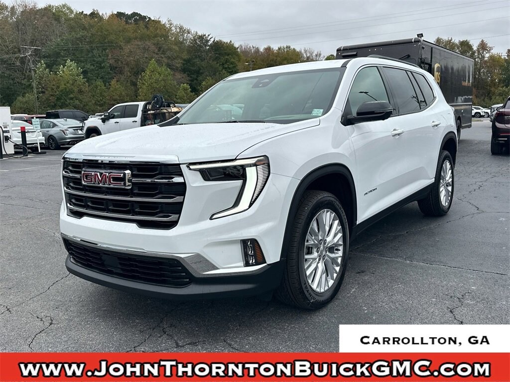 2026 GMC Acadia Elevation20/26 City/Highway MPGSummit White 2026 GMC Acadia Elevation FWD 8-Speed Automatic 2.5L DOHCWe are your premier Carrollton, GA Cadillac dealership. John Thornton Cadillac Inc. Is family owned, and it is our goal to provide you with an excellent purchase and ownership experience. We also proudly serve Douglasville Cadillac customers. Whether you're searching for a new or used car near Douglasville or Bremen, researching financing options, or looking for a quick quote on a car, truck, or SUV, the friendly, yet professional staff at our Carrollton Cadillac dealership is ready to provide you with all the help you need. We are proud to serve Bremen Cadillac customers. We have served as your premier Cadillac dealer for the entire West Georgia area for over 45 years. Elevation Premium Package (3-Channel Programmable Universal Home Remote, 6-Way Power Front Passenger Seat Adjuster, 7-Passenger Seating (2-2-3 Seating Configuration), CoreTec Seat Trim, and Front Passenger Power Lumbar Seat Adjuster), Floor Liner Package (LPO) (1st & 2nd Row All-Weather Floor Liner (LPO), 3rd Row All-Weather Floor Liner (LPO), and Integrated Cargo Liner (LPO)), Luxury Package (8 Diagonal Head-Up Display, Heated Rear Outboard Seating Positions, Heated Wiper Park, and Laminated Acoustic Glass), Preferred Equipment Group 4SC, FWD, Gideon Gray Cloth, 12 Speakers, 18 x 7.5 Aluminum Wheels, 2-Way Driver Power Lumbar Seat Adjuster, 3.49 Final Drive Axle Ratio, 3rd row seats: split-bench, 4-Way Manual Front Passenger Seat Adjuster, 4-Wheel Disc Brakes, 8-Passenger Seating (2-3-3 Seating Configuration), 8-Way Power Driver Seat Adjuster, ABS brakes, Air Conditioning, Alloy wheels, AM/FM radio: SiriusXM with 360L, Apple CarPlay/Android Auto, Auto High-beam Headlights, Automatic temperature control, Bodyside moldings, Bose Premium 12-Speaker System w/Sub-Woofer, Brake assist, Bumpers: body-color, Cloth Seat Trim, Compass, Delay-off headlights, Driver door bin, Driver vanity mirror, Dual front impact airbags, Dual front side impact airbags, Electronic Stability Control, Emergency communication system: OnStar Services capable, Exterior Parking Camera Rear, Four wheel independent suspension, Front anti-roll bar, Front Bucket Seats, Front Center Armrest, Front dual zone A/C, Front fog lights, Front reading lights, Fully automatic headlights, Heated door mirrors, Heated Driver & Front Passenger Seats, Heated front seats, Heated steering wheel, Illuminated entry, Leather steering wheel, Low tire pressure warning, Navigation System, Occupant sensing airbag, Outside temperature display, Overhead airbag, Overhead console, Panic alarm, Passenger door bin, Passenger vanity mirror, Power door mirrors, Power driver seat, Power Liftgate, Power steering, Power windows, Radio data system, Radio: 15 Premium GMC Infotainment System, Rear air conditioning, Rear anti-roll bar, Rear reading lights, Rear seat center armrest, Rear side impact airbag, Rear window defroster, Rear window wiper, Remote keyless entry, Security system, SiriusXM w/360L, Speed control, Speed-sensing steering, Split folding rear seat, Spoiler, Sport steering wheel, Steering wheel mounted audio controls, Tachometer, Telescoping steering wheel, Tilt steering wheel, Traction control, Trip computer, Turn signal indicator mirrors, Variably intermittent wipers, Voltmeter, and Wheels: 20 x 8 Bright Silver Aluminum.FWD, Gideon Gray Cloth.