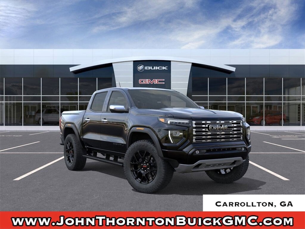 2026 GMC Canyon DenaliOnyx Black 2026 GMC Canyon Denali 4WD 8-Speed Automatic 2.7L I4 Turbocharged DOHC 16V LEV3-SULEV30 310hpWe are your premier Carrollton, GA Cadillac dealership. John Thornton Cadillac Inc. Is family owned, and it is our goal to provide you with an excellent purchase and ownership experience. We also proudly serve Douglasville Cadillac customers. Whether you're searching for a new or used car near Douglasville or Bremen, researching financing options, or looking for a quick quote on a car, truck, or SUV, the friendly, yet professional staff at our Carrollton Cadillac dealership is ready to provide you with all the help you need. We are proud to serve Bremen Cadillac customers. We have served as your premier Cadillac dealer for the entire West Georgia area for over 45 years. Canyon Safety Plus Package (Blind Zone Steering Assist with Trailering, Rear Cross Traffic Braking, and Ultrasonic Rear Park Assist), Denali Black Edition (LPO) (1st and 2nd Rows All-Weather Floor Liner, 20 Black Aluminum Wheels, Black Assist Steps, Black Badges, Black GMC Emblems, and GMC Black Chrome Exhaust Tip), Preferred Equipment Group 5SB (120-Volt Bed Mounted Power Outlet, 2 Rear USB Ports in Center Console (Charge-Only), 5 Rectangular Chrome Assist Steps, 6-Way Power Passenger Seat Adjuster, 8-Way Power Driver Seat Adjuster, Adaptive Cruise Control, Automatic Emergency Braking, Canyon Pro Safety, Driver and Front Passenger Illuminated Visors, Driver and Front Passenger Ventilated Seats, Driver Memory, Driver Seatback Map Pocket, Dual-Zone Automatic Climate Control Air Conditioning, EZ-Lift and Lower Tailgate, Following Distance Indicator, Forward Collision Alert, Front LED Fog Lamps, Front Pedestrian and Bicyclist Braking, HD Surround Vision, Heated Driver and Front Passenger Seats, Heated Steering Wheel, Inside Rear-View Auto-Dimming Mirror, IntelliBeam Automatic High Beam on/Off, Interior Overhead Courtesy Light with Dual Reading Lamp, Lane Keep Assist with Lane Departure Warning, Multicolor 6.3 Diagonal Head-Up Display, MultiStow Tailgate Storage Compartment, Power Driver Lumbar Control Seat Adjuster, Power Passenger Lumbar Control Seat Adjuster, Premium 7-Speaker Bose Sound System, Rear Center Fold-Down Armrest with 2 Cupholders, Rear of Console 120-Volt Power Outlet, Rear Pedestrian Alert, Remote Vehicle Starter System, Safety Alert Seat, Spray-on Bedliner with GMC Logo, Tailgate Keyed Cylinder Lock, Til and Telescopic Manual Steering Column, and Wireless Phone Charging), 4WD, 2 1st Row USB Charge/Data Ports, 3.42 Rear Axle Ratio, 4-Wheel Disc Brakes, 7 Speakers, ABS brakes, Air Conditioning, Alloy wheels, AM/FM radio: SiriusXM with 360L, Apple CarPlay/Android Auto, Auto High-beam Headlights, Auto-dimming Rear-View mirror, Automatic Stop/Start, Automatic temperature control, Brake assist, Bumpers: body-color, Compass, Delay-off headlights, Driver door bin, Driver Mode Selector, Driver vanity mirror, Dual front impact airbags, Dual front side impact airbags, Electronic Stability Control, Emergency communication system: OnStar, Front anti-roll bar, Front Bucket Seats, Front Center Armrest, Front dual zone A/C, Front fog lights, Front Passenger Seatback Map Pocket, Front reading lights, Front wheel independent suspension, Genuine wood dashboard insert, Genuine wood door panel insert, Heads-Up Display, Heated door mirrors, Heated front seats, Heated steering wheel, Illuminated entry, Low tire pressure warning, Memory seat, Navigation System, Occupant sensing airbag, Off-Road Suspension, Outside temperature display, Overhead airbag, Overhead console, Panic alarm, Passenger door bin, Passenger vanity mirror, Perforated Leather-Appointed Seat Trim, Power door mirrors, Power driver seat, Power Inner Sliding Glass Sunroof with Manual Shade, Power passenger seat, Power steering, Power windows, Radio data system, Radio: 11.3 Diagonal Premium GMC Infotainment System, Rear reading lights, Rear seat center arm