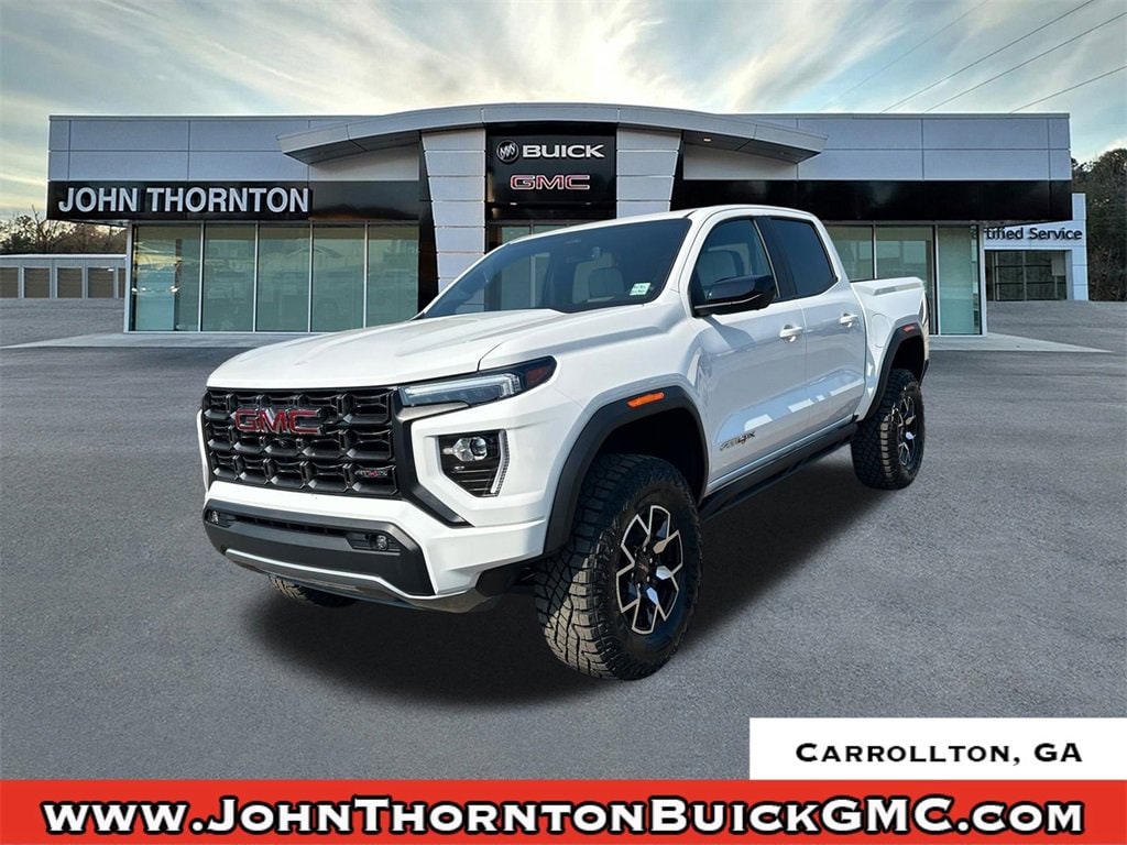 We are your premier Carrollton, GA Cadillac dealership. John Thornton Cadillac Inc. Is family owned, and it is our goal to provide you with an excellent purchase and ownership experience. We also proudly serve Douglasville Cadillac customers. Whether you're searching for a new or used car near Douglasville or Bremen, researching financing options, or looking for a quick quote on a car, truck, or SUV, the friendly, yet professional staff at our Carrollton Cadillac dealership is ready to provide you with all the help you need. We are proud to serve Bremen Cadillac customers. We have served as your premier Cadillac dealer for the entire West Georgia area for over 45 years. AT4X Package (1st & 2nd Rows All-Weather Floor Liners (LPO), Black Finish Sport Upper Bodyside Moldings, Black Off-Road Rocker Protection (LPO), Driver-Selectable Full-Locking Front Differential, Driver-Selectable Full-Locking Rear Differential, Front Side Laminated Solar Glazing Glass, Red Seat Belt Color, Safety Alert Seat, Spray-On Bedliner w/GMC Logo, Trailering App System, and Underbody Cameras), Canyon Safety Plus Package (Blind Zone Steering Assist w/Trailering, Rear Cross Traffic Braking, and Ultrasonic Rear Park Assist), Preferred Equipment Group 4TX (120-Volt Bed Mounted Power Outlet, 2 Rear USB Ports in Center Console (Charge-Only), 6-Way Power Passenger Seat Adjuster, 8-Way Power Driver Seat Adjuster, Adaptive Cruise Control, Automatic Emergency Braking, Canyon Pro Safety, Driver & Front Passenger Illuminated Visors, Driver & Front Passenger Ventilated Seats, Driver Memory, Driver Seatback Map Pocket, Dual-Zone Auto Climate Control Air Conditioning, EZ-Lift & Lower Tailgate, Following Distance Indicator, Forward Collision Alert, Front LED Fog Lamps, Front Pedestrian & Bicyclist Braking, HD Surround Vision, Heated Driver & Front Passenger Seats, Heated Steering Wheel, Inside Rear-View Auto-Dimming Mirror, IntelliBeam Automatic High Beam On/Off, Interior Overhead Courtesy Light w/Dual Reading Lamp, Lane Keep Assist w/Lane Departure Warning, Multicolor 6.3 Diagonal Head-Up Display, MultiStow Tailgate Storage Compartment, Power Driver Lumbar Control Seat Adjuster, Power Passenger Lumbar Control Seat Adjuster, Premium 7-Speaker Bose Sound System, Rear Center Fold-Down Armrest w/2 Cupholders, Rear of Console 120-Volt Power Outlet, Rear Pedestrian Alert, Remote Vehicle Starter System, Tailgate Keyed Cylinder Lock, Tilt & Telescopic Manual Steering Column, and Wireless Phone Charging), Trailering Package (Integrated Trailer Brake Controller), 4WD, 2 1st Row USB Charge/Data Ports, 3.42 Rear Axle Ratio, 4-Wheel Disc Brakes, 7 Speakers, ABS brakes, Air Conditioning, Alloy wheels, AM/FM radio: SiriusXM with 360L, Apple CarPlay/Android Auto, Auto High-beam Headlights, Auto-dimming Rear-View mirror, Automatic Stop/Start, Automatic temperature control, Brake assist, Bumpers: body-color, Compass, Delay-off headlights, Driver door bin, Driver Mode Selector, Driver vanity mirror, Dual front impact airbags, Dual front side impact airbags, Electronic Stability Control, Emergency communication system: OnStar, Front anti-roll bar, Front Bucket Seats, Front Center Armrest, Front dual zone A/C, Front fog lights, Front Passenger Seatback Map Pocket, Front reading lights, Front wheel independent suspension, Heads-Up Display, Heated door mirrors, Heated front seats, Heated steering wheel, Illuminated entry, Low tire pressure warning, Memory seat, Navigation System, Occupant sensing airbag, Off-Road Suspension, Outside temperature display, Overhead airbag, Overhead console, Panic alarm, Passenger door bin, Passenger vanity mirror, Perforated Leather-Appointed Seat Trim, Power door mirrors, Power driver seat, Power moonroof, Power passenger seat, Power steering, Power windows, Radio