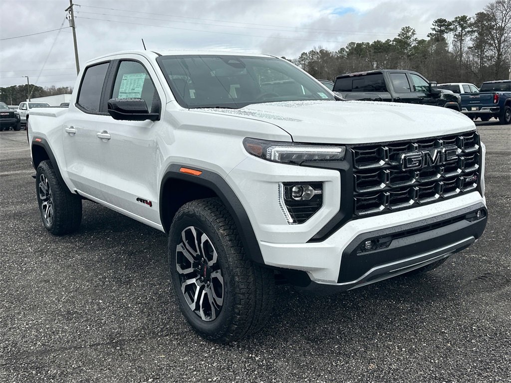 We are your premier Carrollton, GA Cadillac dealership. John Thornton Cadillac Inc. Is family owned, and it is our goal to provide you with an excellent purchase and ownership experience. We also proudly serve Douglasville Cadillac customers. Whether you're searching for a new or used car near Douglasville or Bremen, researching financing options, or looking for a quick quote on a car, truck, or SUV, the friendly, yet professional staff at our Carrollton Cadillac dealership is ready to provide you with all the help you need. We are proud to serve Bremen Cadillac customers. We have served as your premier Cadillac dealer for the entire West Georgia area for over 45 years. Canyon Safety Plus Package (Blind Zone Steering Assist with Trailering, Rear Cross Traffic Braking, and Ultrasonic Rear Park Assist), Nightfall Essentials Package (Black Badges, Black GMC Emblems, and Wheels: 20 x 9 Machined Faced Aluminum), Preferred Equipment Group 4SG (120-Volt Bed Mounted Power Outlet, 2 Rear USB Ports in Center Console (Charge-Only), 8-Way Power Driver Seat Adjuster, Automatic Emergency Braking, Canyon Pro Safety, Driver and Front Passenger Illuminated Visors, Dual-Zone Automatic Climate Control Air Conditioning, EZ-Lift and Lower Tailgate, Following Distance Indicator, Forward Collision Alert, Front LED Fog Lamps, Front Pedestrian and Bicyclist Braking, Heated Driver and Front Passenger Seats, Inside Rear-View Auto-Dimming Mirror, IntelliBeam Automatic High Beam on/Off, Interior Overhead Courtesy Light with Dual Reading Lamp, Lane Keep Assist with Lane Departure Warning, MultiStow Tailgate Storage Compartment, Power Driver Lumbar Control Seat Adjuster, Rear of Console 120-Volt Power Outlet, Remote Vehicle Starter System, Tailgate Keyed Cylinder Lock, and Til and Telescopic Manual Steering Column), 4WD, 1st and 2nd Rows All-Weather Floor Liner, 2 1st Row USB Charge/Data Ports, 3.42 Rear Axle Ratio, 4-Way Manual Front Passenger Seat Adjuster, 4-Wheel Disc Brakes, 6 Speakers, 6-Speaker Audio System Feature, ABS brakes, Air Conditioning, Alloy wheels, AM/FM radio: SiriusXM with 360L, Apple CarPlay/Android Auto, Auto High-beam Headlights, Auto-dimming Rear-View mirror, Automatic Stop/Start, Automatic temperature control, Brake assist, Bumpers: body-color, Cloth/CoreTec Seat Trim, Compass, Delay-off headlights, Driver door bin, Driver Mode Selector, Driver vanity mirror, Dual front impact airbags, Dual front side impact airbags, Electronic Stability Control, Emergency communication system: OnStar, Front anti-roll bar, Front Bucket Seats, Front Center Armrest, Front dual zone A/C, Front fog lights, Front Passenger Seatback Map Pocket, Front reading lights, Front wheel independent suspension, Heated door mirrors, Heated front seats, Illuminated entry, Low tire pressure warning, Navigation System, Occupant sensing airbag, Off-Road Suspension, Outside temperature display, Overhead airbag, Overhead console, Panic alarm, Passenger door bin, Passenger vanity mirror, Power door mirrors, Power driver seat, Power steering, Power windows, Radio data system, Radio: 11.3 Diagonal Premium GMC Infotainment System, Rear reading lights, Rear step bumper, Rear window defroster, Remote keyless entry, Security system, SiriusXM with 360L, Speed control, Speed-sensing steering, Split folding rear seat, Spray-on Bedliner with GMC Logo, Steering wheel mounted audio controls, Stop/Start System Disable Button Engine Control, Tachometer, Telescoping steering wheel, Tilt steering wheel, Traction control, Trip computer, Variably intermittent wipers, Wheels: 18 x 8.5 Gloss Black Aluminum, and Wireless Apple CarPlay/Wireless Android Auto.