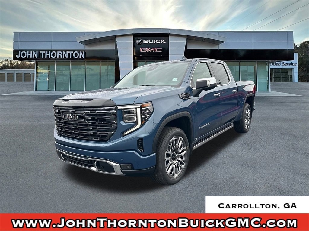 We are your premier Carrollton, GA Cadillac dealership. John Thornton Cadillac Inc. Is family owned, and it is our goal to provide you with an excellent purchase and ownership experience. We also proudly serve Douglasville Cadillac customers. Whether you're searching for a new or used car near Douglasville or Bremen, researching financing options, or looking for a quick quote on a car, truck, or SUV, the friendly, yet professional staff at our Carrollton Cadillac dealership is ready to provide you with all the help you need. We are proud to serve Bremen Cadillac customers. We have served as your premier Cadillac dealer for the entire West Georgia area for over 45 years. Trailering Package (Hitch Guidance), 10-Speed Automatic, 4WD, Alpine Umber Leather, 12 Speakers, 120-Volt Bed Mounted Power Outlet, 120-Volt Interior Power Outlet, 16-Way Power Driver Seat Adjuster w/Lumbar, 16-Way Power Passenger Seat Adjuster w/Lumbar, 170 Amp Alternator, 2 Charge/Data USB Ports Inside Center Console, 2 Type-C Charge-Only Rear USB Ports, 2 USB Ports, 3 Years SiriusXM, 3.23 Rear Axle Ratio, 4-Wheel Disc Brakes, ABS brakes, Adaptive suspension, Air Conditioning, Alloy wheels, AM/FM radio: SiriusXM with 360L, Apple CarPlay/Android Auto, Auto High-beam Headlights, Auto-dimming door mirrors, Auto-dimming Rear-View mirror, Auto-Locking Rear Differential, Automatic temperature control, Bed View Camera, Bose Premium Series w/12-Speaker System, Brake assist, Buckle to Drive, Bumpers: body-color, Carbon Fiber Composite Bed, Chrome Recovery Hooks, Color-Keyed Carpeting Floor Covering, Compass, Deep-Tinted Glass, Delay-off headlights, Denali Premium Suspension w/Adaptive Ride Control, Driver door bin, Driver Memory, Driver vanity mirror, Dual Active Exhaust, Dual front impact airbags, Dual front side impact airbags, Electric Rear-Window Defogger, Electronic Stability Control, Emergency communication system: OnStar, Enhanced Automatic Emergency Braking, Floor-Mounted Center Console, Following Distance Indicator, Forward Collision Alert, Front anti-roll bar, Front Bucket Seats, Front Center Armrest, Front dual zone A/C, Front fog lights, Front Pedestrian Braking, Front Prem Floor Liners w/Removable Carpet Insert, Front Rain-Sensing Wipers, Front reading lights, Front wheel independent suspension, Full Grain Leather Seat Trim, Fully automatic headlights, Garage door transmitter, Genuine wood console insert, Genuine wood dashboard insert, Genuine wood door panel insert, HD Surround Vision, Heads-Up Display, Heated 2nd Row Outboard Seats, Heated door mirrors, Heated Driver & Front Outboard Passenger Seating, Heated front seats, Heated rear seats, Heated steering wheel, Heavy-Duty Air Filter, High Gloss Black Header w/Signature Denali Grille, Hill Descent Control, Hitch View, Illuminated entry, In-Vehicle Trailering System App, Integrated Trailer Brake Controller, IntelliBeam Automatic High Beam On/Off, Keyless Open & Start, LED Cargo Area Lighting, Low tire pressure warning, Memory seat, Multicolor 15 Diagonal Head-Up Display, MultiPro Tailgate Audio System by Kicker (LPO), Navigation System, Occupant sensing airbag, OnStar Services Capable, Outside temperature display, Overhead airbag, Overhead console, Panic alarm, Passenger door bin, Passenger vanity mirror, Perimeter Lighting, Power Door Locks, Power door mirrors, Power driver seat, Power Front Passenger Windows w/Express Up/Down, Power Front Windows w/Driver Express Up/Down, Power moonroof, Power passenger seat, Power Rake & Telescoping Steering Column, Power Rear Windows w/Express Down, Power Sliding Rear Window w/Rear Defogger, Power steering, Power Sunroof, Power windows, Push Button Start, Radio data system, Radio: Premium GMC Infotainment Audio System, Rain sensing wipers, Rear Cross Tr