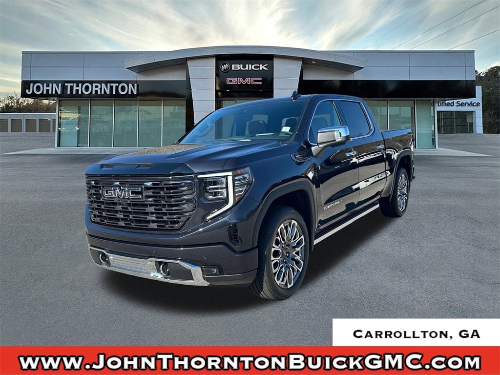 We are your premier Carrollton, GA Cadillac dealership. John Thornton Cadillac Inc. Is family owned, and it is our goal to provide you with an excellent purchase and ownership experience. We also proudly serve Douglasville Cadillac customers. Whether you're searching for a new or used car near Douglasville or Bremen, researching financing options, or looking for a quick quote on a car, truck, or SUV, the friendly, yet professional staff at our Carrollton Cadillac dealership is ready to provide you with all the help you need. We are proud to serve Bremen Cadillac customers. We have served as your premier Cadillac dealer for the entire West Georgia area for over 45 years. Preferred Equipment Group 5SB (120-Volt Bed Mounted Power Outlet, 120-Volt Interior Power Outlet, 2 Charge/Data USB Ports Inside Center Console, 2 Type-C Charge-Only Rear USB Ports, 2 USB Ports, Auto-Locking Rear Differential, Bed View Camera, Bose Premium Series w/12-Speaker System, Chrome Recovery Hooks, Color-Keyed Carpeting Floor Covering, Deep-Tinted Glass, Electric Rear-Window Defogger, Floor-Mounted Center Console, Front Rain-Sensing Wipers, HD Surround Vision, Heated 2nd Row Outboard Seats, Heated Driver & Front Outboard Passenger Seating, Heavy-Duty Air Filter, High Gloss Black Header w/Signature Denali Grille, Hill Descent Control, Hitch View, In-Vehicle Trailering System App, Integrated Trailer Brake Controller, Keyless Open & Start, LED Cargo Area Lighting, Multicolor 15 Diagonal Head-Up Display, MultiPro Tailgate Audio System by Kicker (LPO), OnStar Services Capable, Perimeter Lighting, Power Door Locks, Power Front Passenger Windows w/Express Up/Down, Power Front Windows w/Driver Express Up/Down, Power Rake & Telescoping Steering Column, Power Rear Windows w/Express Down, Power Sliding Rear Window w/Rear Defogger, Power Sunroof, Push Button Start, Rear Cross Traffic Braking, Rear Pedestrian Detection, Rear Wheelhouse Liners, Remote Vehicle Starter System, SiriusXM w/360L Trial Subscription, Spray-On Pickup Bedliner w/GMC Logo, Steering Wheel Audio Controls, Theft Deterrent System (Unauthorized Entry), Trailer Camera Provisions, Trailer Side Blind Zone Alert, Trailer Tire Pressure Monitor System, Ultrasonic Front & Rear Park Assist, Universal Home Remote, Ventilated Driver & Front Passenger Seats, Wi-Fi Hotspot Capable, and Wireless Charging), Trailering Package (Hitch Guidance), 10-Speed Automatic, 4WD, Alpine Umber Leather, 12 Speakers, 16-Way Power Driver Seat Adjuster w/Lumbar, 16-Way Power Passenger Seat Adjuster w/Lumbar, 170 Amp Alternator, 3.23 Rear Axle Ratio, 4-Wheel Disc Brakes, ABS brakes, Adaptive suspension, Air Conditioning, Alloy wheels, AM/FM radio: SiriusXM with 360L, Apple CarPlay/Android Auto, Auto High-beam Headlights, Auto-dimming door mirrors, Auto-dimming Rear-View mirror, Automatic temperature control, Brake assist, Buckle to Drive, Bumpers: body-color, Carbon Fiber Composite Bed, Compass, Delay-off headlights, Denali Premium Suspension w/Adaptive Ride Control, Driver door bin, Driver Memory, Driver vanity mirror, Dual Active Exhaust, Dual front impact airbags, Dual front side impact airbags, Electronic Stability Control, Emergency communication system: OnStar, Enhanced Automatic Emergency Braking, Following Distance Indicator, Forward Collision Alert, Front anti-roll bar, Front Bucket Seats, Front Center Armrest, Front dual zone A/C, Front fog lights, Front Pedestrian Braking, Front reading lights, Front wheel independent suspension, Full Grain Leather Seat Trim, Fully automatic headlights, Garage door transmitter, Genuine wood console insert, Genuine wood dashboard insert, Genuine wood door panel insert, Heads-Up Display, Heated door mirrors, Heated front seats, Heated rear seats, Heated steering wheel, Illuminated en