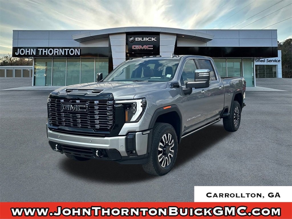 We are your premier Carrollton, GA Cadillac dealership. John Thornton Cadillac Inc. Is family owned, and it is our goal to provide you with an excellent purchase and ownership experience. We also proudly serve Douglasville Cadillac customers. Whether you're searching for a new or used car near Douglasville or Bremen, researching financing options, or looking for a quick quote on a car, truck, or SUV, the friendly, yet professional staff at our Carrollton Cadillac dealership is ready to provide you with all the help you need. We are proud to serve Bremen Cadillac customers. We have served as your premier Cadillac dealer for the entire West Georgia area for over 45 years. Gooseneck/5th Wheel Prep Package, Hitch Package (LPO), Preferred Equipment Group 5SB (120-Volt Bed Mounted Power Outlet, 120-Volt Instrument Panel Power Outlet, 2 Charge-Only Rear USB Ports, 2 Charge/Data USB Ports Inside Center Console, 2 USB Ports, 2-Speed Active Transfer Case, Bed View Camera w/2 Trailer Camera Provisions, Bose Premium Series 12-Speaker System, Deep-Tinted Glass, Electric Rear-Window Defogger, Floor-Mounted Center Console, Front Rain-Sensing Wipers, HD Surround Vision, Heated 2nd Row Outboard Seats, Heated Driver & Front Outboard Passenger Seats, Keyless Open & Start, LED Cargo Area Lighting, LED Smoked Amber Roof Marker Lamps, Manual Tilt-Wheel/Telescoping Steering Column, OnStar Services Capable, Power Front Passenger Windows w/Express Up/Down, Power Sliding Rear Window w/Defogger, Power Sunroof, Push Button Start, Rear Cross Traffic Alert, Rear Wheelhouse Liners, Remote Vehicle Starter System, Safety Alert Seat, Signature Denali Ultimate Grille in Vadar Chrome, SiriusXM w/360L Trial Subscription, Spray-On Pickup Bedliner w/GMC Logo, Steering Wheel Audio Controls, Trailer Cam Provisions & Trailer Viewing Software, Trailer Side Blind Zone Alert, Trailer Tire Pressure Monitor Sensors, Ultrasonic Front & Rear Park Assist, Unauthorized Entry Theft-Deterrent System, Universal Home Remote, Ventilated Driver & Front Passenger Seats, Wireless Charging, and Wireless Phone Projection), Technology Package (Inside Rearview Auto-Dimming Rear Camera Mirror and Multicolor 15 Diagonal Head-Up Display), X31 Off-Road Package (Hill Descent Control), 10-Speed Automatic, 4WD, Alpine Umber Leather, 12 Speakers, 16-Way Power Driver Seat Adjuster w/Lumbar, 16-Way Power Passenger Seat Adjuster w/Lumbar, 220-Amp Alternator, 3.42 Axle Ratio, 4-Wheel Disc Brakes, ABS brakes, Air Conditioning, All-Weather Floor Liners (LPO), Alloy wheels, AM/FM radio: SiriusXM with 360L, Apple CarPlay/Android Auto, Auto High-beam Headlights, Auto-dimming door mirrors, Auto-dimming Rear-View mirror, Automatic Emergency Braking, Automatic temperature control, Block heater, Brake assist, Buckle to Drive, Bumpers: body-color, Compass, Delay-off headlights, Driver door bin, Driver Memory, Driver vanity mirror, Dual front impact airbags, Dual front side impact airbags, Dual Heavy-Duty 70 Amp Battery, Electronic Stability Control, Emergency communication system: OnStar, Following Distance Indicator, Forward Collision Alert, Front anti-roll bar, Front Bucket Seats, Front Center Armrest, Front dual zone A/C, Front fog lights, Front License Plate Kit, Front Pedestrian Braking, Front reading lights, Front wheel independent suspension, Full Grain Leather Seat Trim, Fully automatic headlights, Garage door transmitter, Genuine wood dashboard insert, Genuine wood door panel insert, Heads-Up Display, Heated door mirrors, Heated front seats, Heated rear seats, Heated steering wheel, Hitch Guidance w/Hitch View, Illuminated entry, In-Vehicle Trailering System App, IntelliBeam Automatic High Beam On/Off, Lane Departure Warning System, Leather steering wheel, Low tire pressure warning, Mem