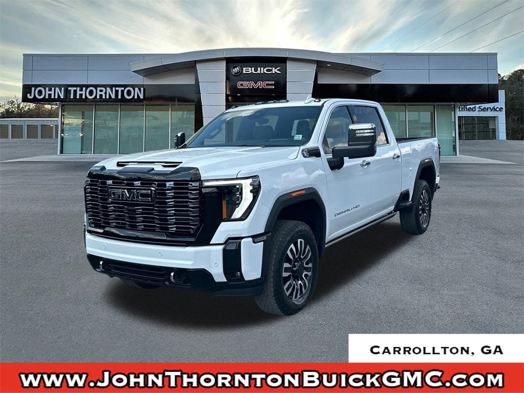 We are your premier Carrollton, GA Cadillac dealership. John Thornton Cadillac Inc. Is family owned, and it is our goal to provide you with an excellent purchase and ownership experience. We also proudly serve Douglasville Cadillac customers. Whether you're searching for a new or used car near Douglasville or Bremen, researching financing options, or looking for a quick quote on a car, truck, or SUV, the friendly, yet professional staff at our Carrollton Cadillac dealership is ready to provide you with all the help you need. We are proud to serve Bremen Cadillac customers. We have served as your premier Cadillac dealer for the entire West Georgia area for over 45 years. Gooseneck/5th Wheel Prep Package, Hitch Package (LPO), Preferred Equipment Group 5SB (120-Volt Bed Mounted Power Outlet, 120-Volt Instrument Panel Power Outlet, 2 Charge-Only Rear USB Ports, 2 Charge/Data USB Ports Inside Center Console, 2 USB Ports, 2-Speed Active Transfer Case, Bed View Camera w/2 Trailer Camera Provisions, Bose Premium Series 12-Speaker System, Deep-Tinted Glass, Electric Rear-Window Defogger, Floor-Mounted Center Console, Front Rain-Sensing Wipers, HD Surround Vision, Heated 2nd Row Outboard Seats, Heated Driver & Front Outboard Passenger Seats, Keyless Open & Start, LED Cargo Area Lighting, LED Smoked Amber Roof Marker Lamps, Manual Tilt-Wheel/Telescoping Steering Column, OnStar Services Capable, Power Front Passenger Windows w/Express Up/Down, Power Sliding Rear Window w/Defogger, Power Sunroof, Push Button Start, Rear Cross Traffic Alert, Rear Wheelhouse Liners, Remote Vehicle Starter System, Safety Alert Seat, Signature Denali Ultimate Grille in Vadar Chrome, SiriusXM w/360L Trial Subscription, Spray-On Pickup Bedliner w/GMC Logo, Steering Wheel Audio Controls, Trailer Cam Provisions & Trailer Viewing Software, Trailer Side Blind Zone Alert, Trailer Tire Pressure Monitor Sensors, Ultrasonic Front & Rear Park Assist, Unauthorized Entry Theft-Deterrent System, Universal Home Remote, Ventilated Driver & Front Passenger Seats, Wireless Charging, and Wireless Phone Projection), Technology Package (Inside Rearview Auto-Dimming Rear Camera Mirror and Multicolor 15 Diagonal Head-Up Display), X31 Off-Road Package (Hill Descent Control), 10-Speed Automatic, 4WD, Alpine Umber Leather, 12 Speakers, 16-Way Power Driver Seat Adjuster w/Lumbar, 16-Way Power Passenger Seat Adjuster w/Lumbar, 220-Amp Alternator, 3.42 Axle Ratio, 4-Wheel Disc Brakes, ABS brakes, Air Conditioning, All-Weather Floor Liners (LPO), Alloy wheels, AM/FM radio: SiriusXM with 360L, Apple CarPlay/Android Auto, Auto High-beam Headlights, Auto-dimming door mirrors, Auto-dimming Rear-View mirror, Automatic Emergency Braking, Automatic temperature control, Block heater, Brake assist, Buckle to Drive, Bumpers: body-color, Compass, Delay-off headlights, Driver door bin, Driver Memory, Driver vanity mirror, Dual front impact airbags, Dual front side impact airbags, Dual Heavy-Duty 70 Amp Battery, Electronic Stability Control, Emergency communication system: OnStar, Following Distance Indicator, Forward Collision Alert, Front anti-roll bar, Front Bucket Seats, Front Center Armrest, Front dual zone A/C, Front fog lights, Front License Plate Kit, Front Pedestrian Braking, Front reading lights, Front wheel independent suspension, Full Grain Leather Seat Trim, Fully automatic headlights, Garage door transmitter, Genuine wood dashboard insert, Genuine wood door panel insert, Heads-Up Display, Heated door mirrors, Heated front seats, Heated rear seats, Heated steering wheel, Hitch Guidance w/Hitch View, Illuminated entry, In-Vehicle Trailering System App, IntelliBeam Automatic High Beam On/Off, Lane Departure Warning System, Leather steering wheel, Low tire pressure warning, Memory s
