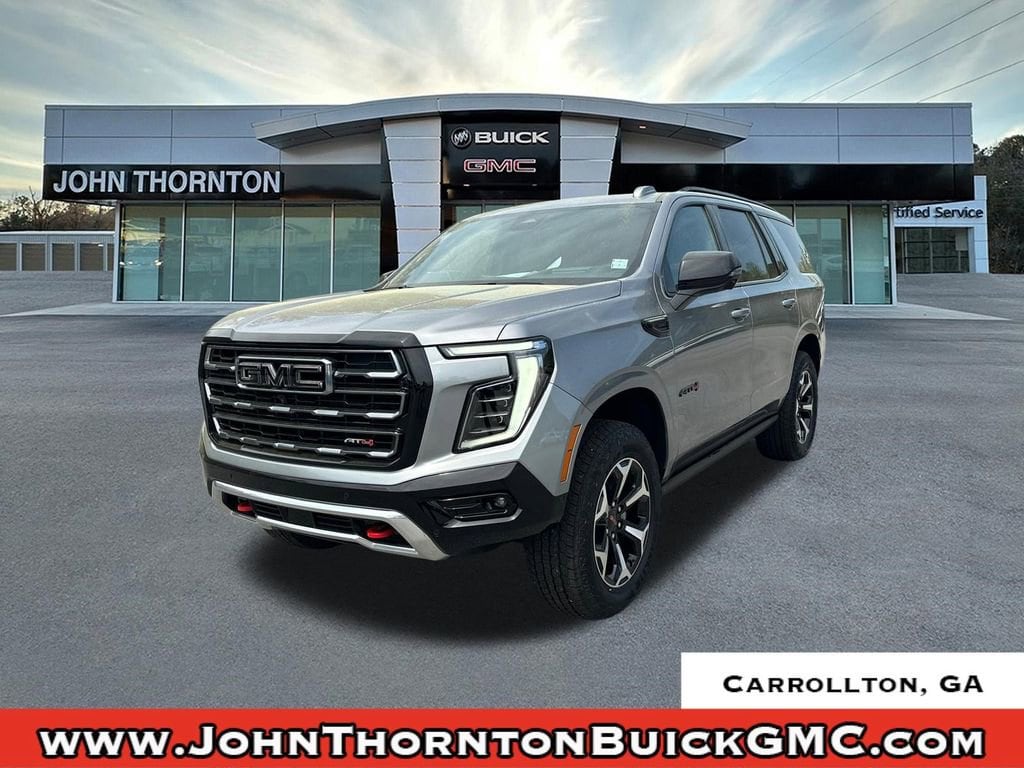 We are your premier Carrollton, GA Cadillac dealership. John Thornton Cadillac Inc. Is family owned, and it is our goal to provide you with an excellent purchase and ownership experience. We also proudly serve Douglasville Cadillac customers. Whether you're searching for a new or used car near Douglasville or Bremen, researching financing options, or looking for a quick quote on a car, truck, or SUV, the friendly, yet professional staff at our Carrollton Cadillac dealership is ready to provide you with all the help you need. We are proud to serve Bremen Cadillac customers. We have served as your premier Cadillac dealer for the entire West Georgia area for over 45 years. Advanced Security Package (Glass Breakage Sensor, Theft-Deterrent Alarm System, Vehicle Inclination Sensor, and Vehicle Interior Movement Sensor), AT4 Black Appearance Package (Black Nameplates and Illuminated Front Black GMC Emblem), AT4 Premium Package (Dual-Pane Panoramic Power Sunroof and Power-Retractable Assist Steps), AT4 Premium Plus Package (Rear Seat Media System), Enhanced Trailering Technology Package (Trailer Camera Provisions, Trailering Assist Guidelines, and Wired Auxiliary Trailer Camera), Floor Liner Package (1st and 2nd Rows All-Weather Floor Liners, 3rd Row All-Weather Floor Liners, and All-Weather Cargo Mat), Max Trailering Package (Blind Zone Steering Assist with Trailering, Extra Capacity Cooling System, Hitch View, Integrated Trailer Brake Controller, and Smart Trailer Integration Indicator), Preferred Equipment Group 4SB (4-Way Power Driver Lumbar Seat Adjuster, 4-Way Power Front Passenger Lumbar Seat Adjuster, AutoSense Hands-Free Power Liftgate, Black Roof-Mounted Luggage Rack Side Rails, Body-Color Door Handles, Bright Front and Rear Door Sill Plates, Dual Exhaust System, Front High-Approach Angle Fascia, Heavy-Duty Air Filter, Hill Descent Control, Magnetic Ride Control Suspension, Perforated Heated and Ventilated Driver and Front Passenger Seats, Power Tilt and Telescopic Steering Column, Red Horizontal-Mounted Recovery Hooks, and Wheels: 20 x 9 Machined and Painted), Premium Capability Package with Active Response 4WD (Air Ride Adaptive Suspension and Electronic Limited Slip Differential (ELSD)), Technology Package (15 Diagonal Multi-Color Head-Up Display, Floor Console, Inside Rearview Auo-Dimming Rear Camera Mirror, and Power Release 2nd Row Bucket Seats), 4WD, 10 Speakers, 3.23 Rear Axle Ratio, 3rd row seats: split-bench, 4-Wheel Disc Brakes, ABS brakes, Adaptive suspension, Air Conditioning, Alloy wheels, AM/FM radio: SiriusXM with 360L, Apple CarPlay/Android Auto, Audio memory, Auto High-beam Headlights, Auto-dimming door mirrors, Auto-dimming Rear-View mirror, Auto-leveling suspension, Automatic temperature control, Bose 10-Speaker Surround with CenterPoint, Brake assist, Bumpers: body-color, Compass, Delay-off headlights, Driver Attention Assist, Driver door bin, Driver vanity mirror, Dual front impact airbags, Dual front side impact airbags, Electronic Stability Control, Emergency communication system: OnStar and GMC connected services capable, Exterior Parking Camera Rear, Four wheel independent suspension, Front anti-roll bar, Front Bucket Seats, Front Center Armrest, Front dual zone A/C, Front fog lights, Front reading lights, Fully automatic headlights, Garage door transmitter, Heated door mirrors, Heated Driver and Front Passenger Seats, Heated front seats, Heated rear seats, Heated steering wheel, Illuminated entry, Low tire pressure warning, Memory seat, Navigation system: GMC Connected Navigation, Occupant sensing airbag, Outside temperature display, Overhead airbag, Overhead console, Panic alarm, Passenger door bin, Passenger vanity mirror, Perforated Leather Seating Surfaces, Power door mirrors, Power driver seat, Power Liftgate, Powe