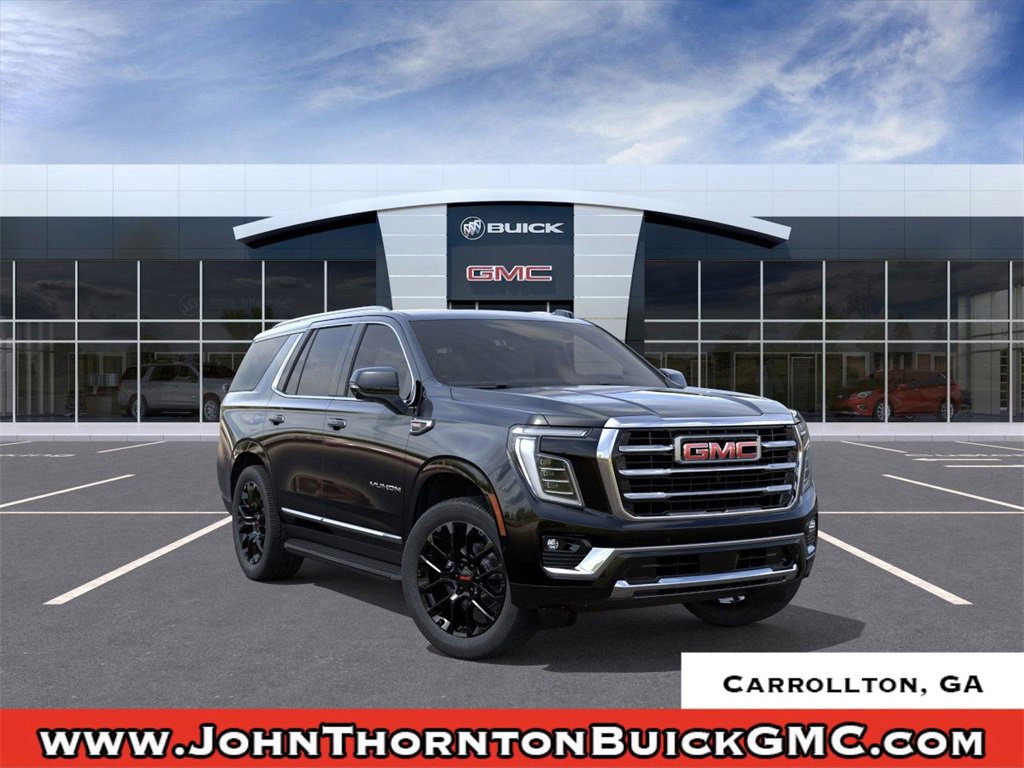 2026 GMC Yukon ElevationOnyx Black 2026 GMC Yukon Elevation 4WD 10-Speed Automatic with Overdrive EcoTec3 5.3L V8We are your premier Carrollton, GA Cadillac dealership. John Thornton Cadillac Inc. Is family owned, and it is our goal to provide you with an excellent purchase and ownership experience. We also proudly serve Douglasville Cadillac customers. Whether you're searching for a new or used car near Douglasville or Bremen, researching financing options, or looking for a quick quote on a car, truck, or SUV, the friendly, yet professional staff at our Carrollton Cadillac dealership is ready to provide you with all the help you need. We are proud to serve Bremen Cadillac customers. We have served as your premier Cadillac dealer for the entire West Georgia area for over 45 years. Floor Liner Package (1st and 2nd Rows All-Weather Floor Liners, 3rd Row All-Weather Floor Liners, and All-Weather Cargo Mat), Preferred Equipment Group 4SA, 4WD, 10 Speakers, 22 Multi-Spoke Gloss Black Wheels, 3.23 Rear Axle Ratio, 3rd row seats: split-bench, 4-Wheel Disc Brakes, ABS brakes, Air Conditioning, Alloy wheels, AM/FM radio: SiriusXM with 360L, Apple CarPlay/Android Auto, Audio memory, Auto High-beam Headlights, Auto-dimming door mirrors, Auto-dimming Rear-View mirror, Automatic temperature control, Bodyside moldings, Bose 10-Speaker Surround with CenterPoint, Brake assist, Bumpers: body-color, Compass, CoreTech/Perforated Leather-Appointed Seating, Delay-off headlights, Driver door bin, Driver vanity mirror, Dual front impact airbags, Dual front side impact airbags, Electronic Stability Control, Emergency communication system: OnStar and GMC connected services capable, Exterior Parking Camera Rear, Floor Console, Four wheel independent suspension, Front anti-roll bar, Front Bucket Seats, Front Center Armrest, Front dual zone A/C, Front fog lights, Front reading lights, Fully automatic headlights, Garage door transmitter, Heated door mirrors, Heated Driver and Front Passenger Seats, Heated front seats, Heated rear seats, Heated steering wheel, Illuminated entry, Low tire pressure warning, Memory seat, Navigation system: GMC Connected Navigation, Occupant sensing airbag, Outside temperature display, Overhead airbag, Overhead console, Panic alarm, Passenger door bin, Passenger vanity mirror, Power door mirrors, Power driver seat, Power Liftgate, Power passenger seat, Power Release 2nd Row Bucket Seats, Power steering, Power windows, Premium Smooth Ride Suspension, Radio: 16.8 Diagonal Premium GMC Infotainment System, Rain sensing wipers, Rear air conditioning, Rear anti-roll bar, Rear reading lights, Rear seat center armrest, Rear window defroster, Rear window wiper, Remote keyless entry, Security system, SiriusXM with 360L, Speed control, Speed-sensing steering, Split folding rear seat, Spoiler, Steering wheel mounted audio controls, Tachometer, Telescoping steering wheel, Tilt steering wheel, Traction control, Trip computer, Turn signal indicator mirrors, Variably intermittent wipers, Voltmeter, Wheels: 20 x 9 Machined and Painted, and Wheels: 22 x 9 Steel Interim.4WD.