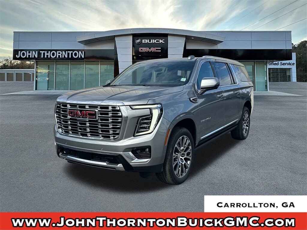 We are your premier Carrollton, GA Cadillac dealership. John Thornton Cadillac Inc. Is family owned, and it is our goal to provide you with an excellent purchase and ownership experience. We also proudly serve Douglasville Cadillac customers. Whether you're searching for a new or used car near Douglasville or Bremen, researching financing options, or looking for a quick quote on a car, truck, or SUV, the friendly, yet professional staff at our Carrollton Cadillac dealership is ready to provide you with all the help you need. We are proud to serve Bremen Cadillac customers. We have served as your premier Cadillac dealer for the entire West Georgia area for over 45 years. Advanced Security Package (Glass Breakage Sensor, Theft-Deterrent Alarm System, Vehicle Inclination Sensor, and Vehicle Interior Movement Sensor), Advanced Technology Package (3 Years OnStar One, Driver Attention Assist, Inside Rearview Auo-Dimming Rear Camera Mirror, Rear Seat Media System, and Super Cruise), Denali Reserve Package (Dual-Pane Panoramic Power Sunroof and Power-Retractable Assist Steps), Enhanced Trailering Technology Package (Trailer Camera Provisions, Trailering Assist Guidelines, and Wired Auxiliary Trailer Camera), Floor Liner Package (3rd Row All-Weather Floor Liners, All-Weather Cargo Mat, and First and Second Rows Premium Floor Liners), Max Trailering Package (Blind Zone Steering Assist with Trailering, Extra Capacity Cooling System, Hill Descent Control, Hitch View, Integrated Trailer Brake Controller, and Smart Trailer Integration Indicator), Preferred Equipment Group 5SA (15 Diagonal Multi-Color Head-Up Display, 4-Way Power Driver Lumbar Seat Adjuster, 4-Way Power Front Passenger Lumbar Seat Adjuster, AutoSense Hands-Free Power Liftgate, Bright Front and Rear Door Sill Plates, Dual Exhaust System, Galvano Bodyside Moldings, Magnetic Ride Control Suspension, Perforated Heather and Ventilated Driver and Front Passenger Seats, Power Release 2nd Row Bucket Seats, Power Tilt and Telescopic Steering Column, and Wheels: 20 x 9 6-Spoke Polished Aluminum), Premium Capability Package with Active Response 4WD (Air Ride Adaptive Suspension and Electronic Limited Slip Differential (ELSD)), 4WD, 10 Speakers, 3 Years SiriusXM, 3.23 Rear Axle Ratio, 3rd row seats: split-bench, 4-Wheel Disc Brakes, ABS brakes, Adaptive suspension, Air Conditioning, Alloy wheels, AM/FM radio: SiriusXM with 360L, Apple CarPlay/Android Auto, Audio memory, Auto High-beam Headlights, Auto-dimming door mirrors, Auto-dimming Rear-View mirror, Auto-leveling suspension, Automatic temperature control, Bodyside moldings, Bose 10-Speaker Surround with CenterPoint, Brake assist, Bumpers: body-color, Compass, Delay-off headlights, Driver door bin, Driver vanity mirror, Dual front impact airbags, Dual front side impact airbags, Electronic Stability Control, Emergency communication system: OnStar and GMC connected services capable, Exterior Parking Camera Rear, Four wheel independent suspension, Front anti-roll bar, Front Bucket Seats, Front Center Armrest, Front dual zone A/C, Front fog lights, Front reading lights, Fully automatic headlights, Garage door transmitter, Heads-Up Display, Heated door mirrors, Heated Driver and Front Passenger Seats, Heated front seats, Heated rear seats, Heated steering wheel, Illuminated entry, Low tire pressure warning, Memory seat, Navigation system: GMC Connected Navigation, Occupant sensing airbag, Outside temperature display, Overhead airbag, Overhead console, Panic alarm, Passenger door bin, Passenger vanity mirror, Perforated Leather Seating Surfaces, Power door mirrors, Power driver seat, Power Liftgate, Power passenger seat, Power steering, Power windows, Radio: 16.8 Diagonal Premium GMC Infotainment System, Rain sensing wipers, Rear air conditioning, R