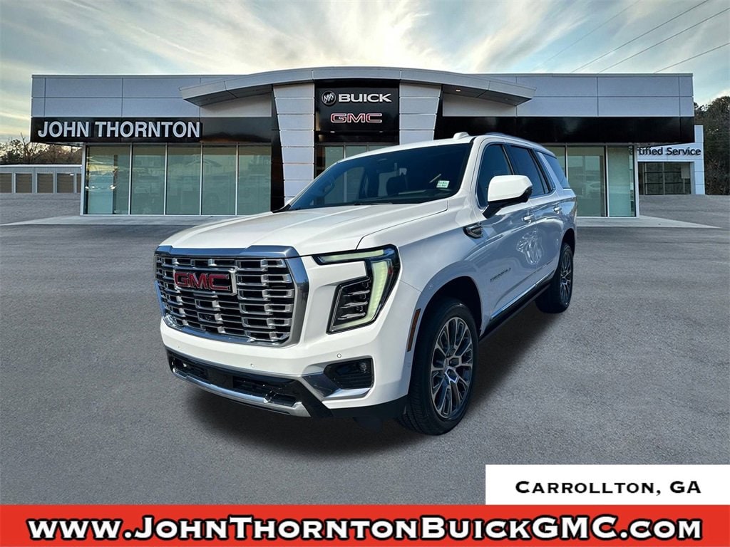 We are your premier Carrollton, GA Cadillac dealership. John Thornton Cadillac Inc. Is family owned, and it is our goal to provide you with an excellent purchase and ownership experience. We also proudly serve Douglasville Cadillac customers. Whether you're searching for a new or used car near Douglasville or Bremen, researching financing options, or looking for a quick quote on a car, truck, or SUV, the friendly, yet professional staff at our Carrollton Cadillac dealership is ready to provide you with all the help you need. We are proud to serve Bremen Cadillac customers. We have served as your premier Cadillac dealer for the entire West Georgia area for over 45 years. Floor Liner Package (LPO) (1st & 2nd Rows Premium Floor Liners (LPO), 3rd Row All-Weather Floor Liners (LPO), and All-Weather Cargo Mat (LPO)), Sun & Power Step Package (Dual-Pane Panoramic Power Sunroof and Power-Retractable Assist Steps), 4WD, 10 Speakers, 15 Diagonal Multi-Color Head-Up Display, 3 Years OnStar One (R9M), 3 Years SiriusXM, 3.23 Rear Axle Ratio, 3rd row seats: split-bench, 4-Way Power Driver Lumbar Seat Adjuster, 4-Way Power Front Passenger Lumbar Seat Adjuster, 4-Wheel Disc Brakes, ABS brakes, Adaptive suspension, Air Conditioning, Alloy wheels, AM/FM radio: SiriusXM with 360L, Apple CarPlay/Android Auto, Audio memory, Auto High-beam Headlights, Auto-dimming door mirrors, Auto-dimming Rear-View mirror, Auto-leveling suspension, Automatic temperature control, AutoSense Hands-Free Power Liftgate, Bodyside moldings, Bose 10-Speaker Surround w/CenterPoint, Brake assist, Bright Front & Rear Door Sill Plates, Bumpers: body-color, Compass, Delay-off headlights, Driver door bin, Driver vanity mirror, Dual Exhaust System, Dual front impact airbags, Dual front side impact airbags, Electronic Stability Control, Emergency communication system: OnStar and GMC connected services capable, Exterior Parking Camera Rear, Four wheel independent suspension, Front anti-roll bar, Front Bucket Seats, Front Center Armrest, Front dual zone A/C, Front fog lights, Front reading lights, Fully automatic headlights, Galvano Bodyside Moldings, Garage door transmitter, Heads-Up Display, Heated door mirrors, Heated Driver & Front Passenger Seats, Heated front seats, Heated rear seats, Heated steering wheel, Illuminated entry, Low tire pressure warning, Magnetic Ride Control Suspension, Memory seat, Navigation system: GMC Connected Navigation, Occupant sensing airbag, Outside temperature display, Overhead airbag, Overhead console, Panic alarm, Passenger door bin, Passenger vanity mirror, Perforated Heated & Ventilated Dr & Frt Pass Seats, Perforated Leather Seating Surfaces, Power door mirrors, Power driver seat, Power Liftgate, Power passenger seat, Power Release 2nd Row Bucket Seats, Power steering, Power Tilt & Telescopic Steering Column, Power windows, Radio: 16.8 Diagonal Premium GMC Infotainment Sys, Rain sensing wipers, Rear air conditioning, Rear anti-roll bar, Rear reading lights, Rear window defroster, Rear window wiper, Remote keyless entry, Security system, SiriusXM w/360L, Speed control, Speed-sensing steering, Split folding rear seat, Spoiler, Steering wheel memory, Steering wheel mounted audio controls, Tachometer, Telescoping steering wheel, Tilt steering wheel, Traction control, Trip computer, Turn signal indicator mirrors, Variably intermittent wipers, Ventilated front seats, Voltmeter, Wheel Locks (Set of 4) (LPO), Wheels: 20 x 9 6-Spoke Polished Aluminum, and Wheels: 22 x 9 UItra-Bright Machined.