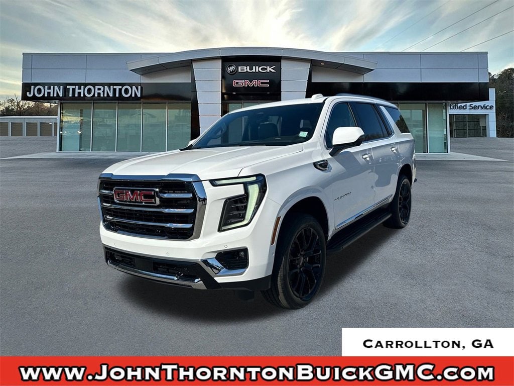 We are your premier Carrollton, GA Cadillac dealership. John Thornton Cadillac Inc. Is family owned, and it is our goal to provide you with an excellent purchase and ownership experience. We also proudly serve Douglasville Cadillac customers. Whether you're searching for a new or used car near Douglasville or Bremen, researching financing options, or looking for a quick quote on a car, truck, or SUV, the friendly, yet professional staff at our Carrollton Cadillac dealership is ready to provide you with all the help you need. We are proud to serve Bremen Cadillac customers. We have served as your premier Cadillac dealer for the entire West Georgia area for over 45 years. Floor Liner Package (1st and 2nd Rows All-Weather Floor Liners, 3rd Row All-Weather Floor Liners, and All-Weather Cargo Mat), Preferred Equipment Group 4SA, 4WD, 10 Speakers, 22 Multi-Spoke Gloss Black Wheels, 3 Years SiriusXM, 3.23 Rear Axle Ratio, 3rd row seats: split-bench, 4-Wheel Disc Brakes, ABS brakes, Air Conditioning, Alloy wheels, AM/FM radio: SiriusXM with 360L, Apple CarPlay/Android Auto, Audio memory, Auto High-beam Headlights, Auto-dimming door mirrors, Auto-dimming Rear-View mirror, Automatic temperature control, Bodyside moldings, Bose 10-Speaker Surround with CenterPoint, Brake assist, Bumpers: body-color, Compass, CoreTech/Perforated Leather-Appointed Seating, Delay-off headlights, Driver door bin, Driver vanity mirror, Dual front impact airbags, Dual front side impact airbags, Electronic Stability Control, Emergency communication system: OnStar and GMC connected services capable, Exterior Parking Camera Rear, Floor Console, Four wheel independent suspension, Front anti-roll bar, Front Bucket Seats, Front Center Armrest, Front dual zone A/C, Front fog lights, Front reading lights, Fully automatic headlights, Garage door transmitter, Heated door mirrors, Heated Driver and Front Passenger Seats, Heated front seats, Heated rear seats, Heated steering wheel, Illuminated entry, Low tire pressure warning, Memory seat, Navigation system: GMC Connected Navigation, Occupant sensing airbag, Outside temperature display, Overhead airbag, Overhead console, Panic alarm, Passenger door bin, Passenger vanity mirror, Power door mirrors, Power driver seat, Power Liftgate, Power passenger seat, Power Release 2nd Row Bucket Seats, Power steering, Power windows, Premium Smooth Ride Suspension, Radio: 16.8 Diagonal Premium GMC Infotainment System, Rain sensing wipers, Rear air conditioning, Rear anti-roll bar, Rear reading lights, Rear seat center armrest, Rear window defroster, Rear window wiper, Remote keyless entry, Security system, SiriusXM with 360L, Speed control, Speed-sensing steering, Split folding rear seat, Spoiler, Steering wheel mounted audio controls, Tachometer, Telescoping steering wheel, Tilt steering wheel, Traction control, Trip computer, Turn signal indicator mirrors, Variably intermittent wipers, Voltmeter, Wheels: 20 x 9 Machined and Painted, and Wheels: 22 x 9 Steel Interim.