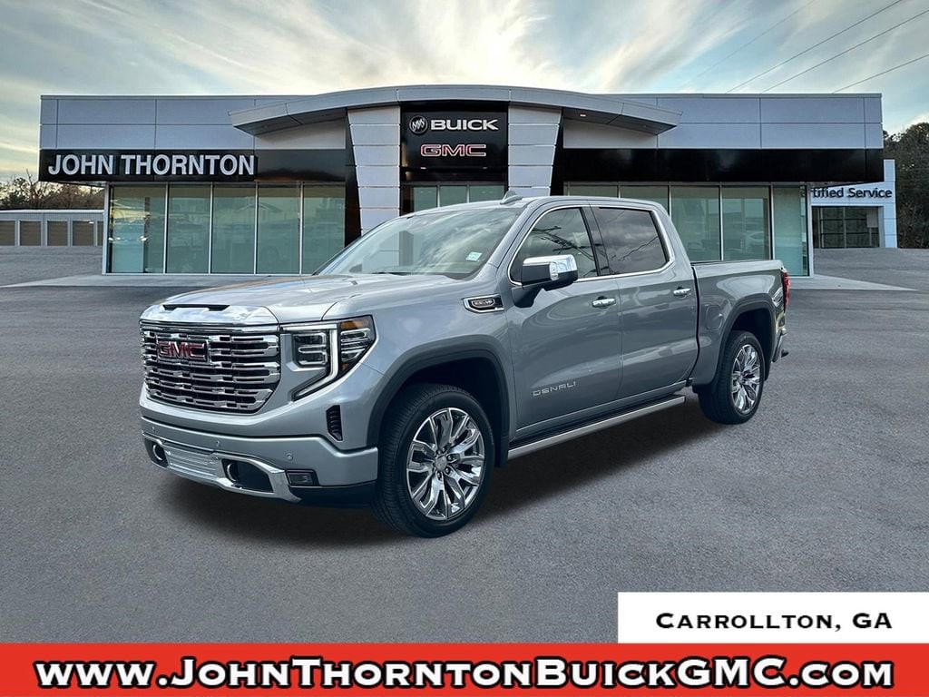 2026 GMC Sierra 1500 DenaliSterling Metallic 2026 GMC Sierra 1500 Denali 4WD 10-Speed Automatic EcoTec3 6.2L V8We are your premier Carrollton, GA Cadillac dealership. John Thornton Cadillac Inc. Is family owned, and it is our goal to provide you with an excellent purchase and ownership experience. We also proudly serve Douglasville Cadillac customers. Whether you're searching for a new or used car near Douglasville or Bremen, researching financing options, or looking for a quick quote on a car, truck, or SUV, the friendly, yet professional staff at our Carrollton Cadillac dealership is ready to provide you with all the help you need. We are proud to serve Bremen Cadillac customers. We have served as your premier Cadillac dealer for the entire West Georgia area for over 45 years. Denali Reserve Super Package (GMC MultiPro Power Steps, Power Sunroof, Super Cruise, Super Cruise Wrapped Steering Wheel, Wheel Locks (set of 4), and Wheels: 22 x 9 Painted Aluminum), Preferred Equipment Group 5SA (120-Volt Bed Mounted Power Outlet, 120-Volt Interior Power Outlet, 170 Amp Alternator, 2 Charge/Data USB Ports Inside Center Console, 2 Type-C Charge-Only Rear USB Ports, 2 USB Ports, Auto-Locking Rear Differential, Auxiliary External Transmission Oil Cooler, Bed View Camera, Chrome Header with Signature Denali Chrome Grille, Chrome Recovery Hooks, Chrome Wheel to Wheel Assist Steps, Color-Keyed Carpeting Floor Covering, Deep-Tinted Glass, Denali Premium Suspension with Adaptive Ride Control, Electric Rear-Window Defogger, Floor-Mounted Center Console, Front Rain-Sensing Wipers, HD Surround Vision, Heated 2nd Row Outboard Seats, Heated Driver and Front Outboard Passenger Seating, Heavy-Duty Air Filter, Hill Descent Control, Hitch View, in-Vehicle Trailering System App, Integrated Trailer Brake Controller, Keyless Open and Start, LED Cargo Area Lighting, OnStar Services Capable, Perimeter Lighting, Power Door Locks, Power Front Passenger Windows with Express Up/Down, Power Front Windows with Driver Express Up/Down, Power Rake and Telescoping Steering Column, Power Rear Windows with Express Down, Power Sliding Rear Window with Rear Defogger, Premium Bose 7-Speaker Sound System, Push Button Start, Rear Cross Traffic Braking, Rear Pedestrian Detection, Rear Wheelhouse Liners, Remote Vehicle Starter System, SiriusXM with 360L Trial Subscription, Spray-on Pickup Bedliner with GMC Logo, Steering Wheel Audio Controls, Theft Deterrent System (unauthorized Entry), Trailer Camera Provisions, Trailer Side Blind Zone Alert, Ultrasonic Front and Rear Park Assist, Universal Home Remote, Ventilated Driver and Front Passenger Seats, Wheels: 20 x 9 Multi-Dimensional Polished Aluminum, Wi-Fi Hotspot Capable, and Wireless Charging), Technology Package (Multicolor 15 Diagonal Head-Up Display and Rear Camera Mirror), Trailering Package (Hitch Guidance), 10-Speed Automatic, 4WD, Atmosphere/Brownstone Leather, 12-Way Power Driver Seat Adjuster with Lumbar, 12-Way Power Passenger Seat Adjuster with Lumbar, 3 Years SiriusXM, 3.23 Rear Axle Ratio, 4-Wheel Disc Brakes, 7 Speakers, ABS brakes, Adaptive suspension, Air Conditioning, Alloy wheels, AM/FM radio: SiriusXM with 360L, Apple CarPlay/Android Auto, Auto High-beam Headlights, Auto-dimming door mirrors, Auto-dimming Rear-View mirror, Automatic temperature control, Brake assist, Buckle to Drive, Bumpers: body-color, Compass, Delay-off headlights, Driver door bin, Driver Memory, Driver vanity mirror, Dual Active Exhaust, Dual front impact airbags, Dual front side impact airbags, Electronic Stability Control, Emergency communication system: OnStar, Enhanced Automatic Emergency Braking, Following Distance Indicator, Forge Perforated Leather Seat Trim, Forward Collision Alert, Front anti-roll bar, Front Bucket Seats, Front Center Armrest, Front dual zone A/C, Front fog lights, Front Pedestrian Braking, Front Premium Floor Liners with Removable Carpet Insert, Front reading lights, Front wheel