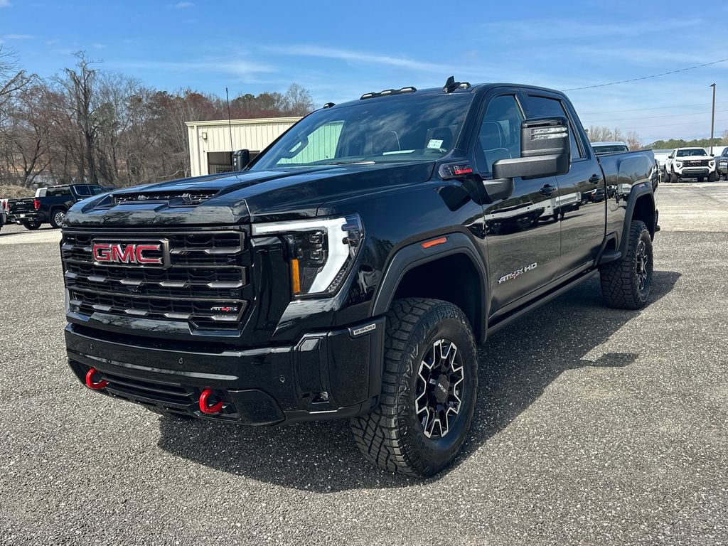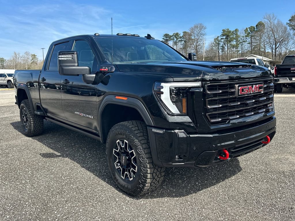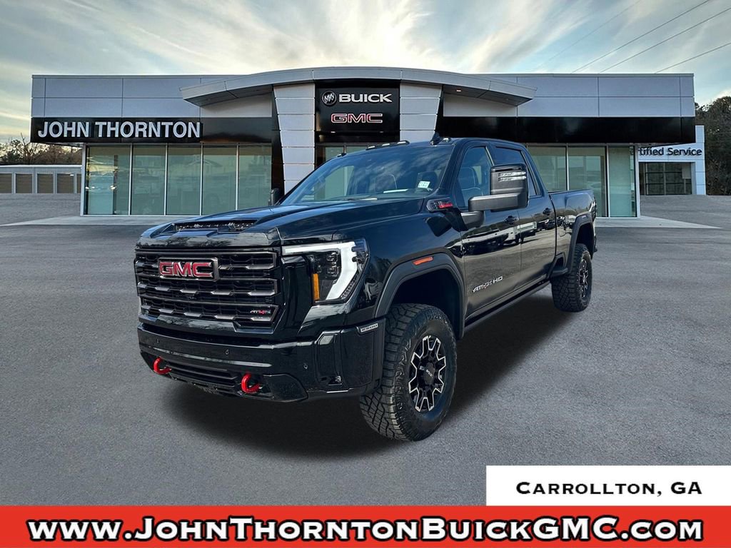 2026 GMC Sierra 2500HD AT4XOnyx Black 2026 GMC Sierra 2500HD AT4X 4WD 10-Speed Automatic Duramax 6.6L V8 TurbodieselWe are your premier Carrollton, GA Cadillac dealership. John Thornton Cadillac Inc. Is family owned, and it is our goal to provide you with an excellent purchase and ownership experience. We also proudly serve Douglasville Cadillac customers. Whether you're searching for a new or used car near Douglasville or Bremen, researching financing options, or looking for a quick quote on a car, truck, or SUV, the friendly, yet professional staff at our Carrollton Cadillac dealership is ready to provide you with all the help you need. We are proud to serve Bremen Cadillac customers. We have served as your premier Cadillac dealer for the entire West Georgia area for over 45 years. Gooseneck/5th Wheel Prep Package, Hitch Package, Preferred Equipment Group 4SG (120-Volt Bed Mounted Power Outlet, 120-Volt Instrument Panel Power Outlet, 2 Charge-Only Rear USB Ports, 2 Charge/Data USB Ports Inside Center Console, 2 USB Ports, 2-Speed Active Transfer Case, Bed View Camera with Two Trailer Camera Provisions, Bose Premium Series 12-Speaker System, Deep-Tinted Glass, Electric Rear-Window Defogger, Floor-Mounted Center Console, Front Premium Floor Liners with Removable Carpet Insert, Front Rain-Sensing Wipers, Gloss Black Header Grille and Grille Insert Bars, HD Surround Vision, Heated 2nd Row Outboard Seats, Heated Driver and Front Outboard Passenger Seats, Hill Descent Control, Inside Rearview Auo-Dimming Rear Camera Mirror, Keyless Open and Start, LED Cargo Area Lighting, LED Smoked Amber Roof Marker Lamps, Manual Tilt-Wheel/Telescoping Steering Column, Multicolor 15 Diagonal Head-Up Display, OnStar Services Capable, Power Front Passenger Windows with Express Up/Down, Power Sliding Rear Window with Defogger, Power Sunroof, Push Button Start, Rear Cross Traffic Alert, Rear Premium Floor Liners with Removable Carpet Insert, Rear Wheelhouse Liners, Remote Vehicle Starter System, Safety Alert Seat, SiriusXM with 360L Trial Subscription, Spray-on Pickup Bedliner with GMC Logo, Steering Wheel Audio Controls, Trailer Cam Provisions and Trailer Viewing Software, Trailer Side Blind Zone Alert, Trailer Tire Pressure Monitor Sensors, Ultrasonic Front and Rear Park Assist, Unauthorized Entry Theft-Deterrent System, Universal Home Remote, Ventilated Driver and Front Passenger Seats, Wireless Charging, and Wireless Phone Projection), 10-Speed Automatic, 4WD, Obsidian Rush Leather, 12 Speakers, 16-Way Power Driver Seat Adjuster with Lumbar, 16-Way Power Passenger Seat Adjuster with Lumbar, 220-Amp Alternator, 3 Years SiriusXM, 4-Wheel Disc Brakes, ABS brakes, Air Conditioning, Alloy wheels, AM/FM radio: SiriusXM with 360L, Apple CarPlay/Android Auto, Auto High-beam Headlights, Auto-dimming door mirrors, Auto-dimming Rear-View mirror, Automatic Emergency Braking, Automatic temperature control, Brake assist, Buckle to Drive, Compass, Delay-off headlights, Driver door bin, Driver Memory, Driver vanity mirror, Dual front impact airbags, Dual front side impact airbags, Electronic Stability Control, Emergency communication system: OnStar, Engine Block Heater, Exhaust Brake, Following Distance Indicator, Forward Collision Alert, Front anti-roll bar, Front Bucket Seats, Front Center Armrest, Front dual zone A/C, Front fog lights, Front Pedestrian Braking, Front reading lights, Front wheel independent suspension, Full Grain Leather Seat Trim, Fully automatic headlights, Garage door transmitter, Gloss Black Door Handles, Heads-Up Display, Heated door mirrors, Heated front seats, Heated rear seats, Heated steering wheel, Heavy-Duty 80 Amp Battery, Hitch Guidance with Hitch View, Illuminated entry, in-Vehicle Trailering System App, IntelliBeam Automatic High Beam on/Off, Lane Departure Warning System, Leather steering wheel, Low tire pressure warning, Memory seat, Occupant sensing airbag, Off-Road Suspension, Outside temperature dis