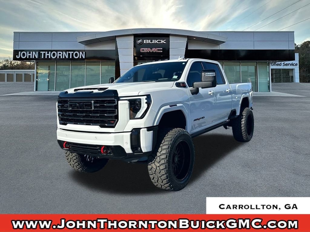 We are your premier Carrollton, GA Cadillac dealership. John Thornton Cadillac Inc. Is family owned, and it is our goal to provide you with an excellent purchase and ownership experience. We also proudly serve Douglasville Cadillac customers. Whether you're searching for a new or used car near Douglasville or Bremen, researching financing options, or looking for a quick quote on a car, truck, or SUV, the friendly, yet professional staff at our Carrollton Cadillac dealership is ready to provide you with all the help you need. We are proud to serve Bremen Cadillac customers. We have served as your premier Cadillac dealer for the entire West Georgia area for over 45 years. AT4 Preferred Package (LED Smoked Amber Roof Marker Lamps, Power Sliding Rear Window with Defogger, and Universal Home Remote), AT4 Premium Plus Package (Power Sunroof), Gooseneck/5th Wheel Prep Package, Hitch Package, Preferred Equipment Group 4SB (120-Volt Bed Mounted Power Outlet, 120-Volt Instrument Panel Power Outlet, 2 Charge-Only Rear USB Ports, 2 Charge/Data USB Ports Inside Center Console, 2 USB Ports, 2-Speed Active Transfer Case, Bed View Camera with Two Trailer Camera Provisions, Bose Premium 7-Speaker Sound System, Deep-Tinted Glass, Electric Rear-Window Defogger, Floor-Mounted Center Console, Front Premium Floor Liners with Removable Carpet Insert, Front Rain-Sensing Wipers, Gloss Black Header Grille and Grille Insert Bars, HD Surround Vision, Heated 2nd Row Outboard Seats, Heated Driver and Front Outboard Passenger Seats, Keyless Open and Start, LED Cargo Area Lighting, Manual Tilt-Wheel/Telescoping Steering Column, OnStar Services Capable, Power Front Passenger Windows with Express Up/Down, Push Button Start, Rear Cross Traffic Alert, Rear Premium Floor Liners with Removable Carpet Insert, Rear Wheelhouse Liners, Remote Vehicle Starter System, Safety Alert Seat, SiriusXM with 360L Trial Subscription, Spray-on Pickup Bedliner with GMC Logo, Steering Wheel Audio Controls, Trailer Cam Provisions and Trailer Viewing Software, Trailer Side Blind Zone Alert, Ultrasonic Front and Rear Park Assist, Unauthorized Entry Theft-Deterrent System, Ventilated Driver and Front Passenger Seats, Wireless Charging, and Wireless Phone Projection), Technology Package (Inside Rearview Auo-Dimming Rear Camera Mirror and Multicolor 15 Diagonal Head-Up Display), X31 Off-Road Package (Hill Descent Control and Off-Road Suspension), 10-Speed Automatic, 4WD, Jet Black With Kalahari Accents Leather, 10-Way Power Driver Seat Adjuster with Lumbar, 10-Way Power Passenger Seat Adjuster with Lumbar, 1st and 2nd Rows All-Weather Floor Liners, 220-Amp Alternator, 4-Wheel Disc Brakes, 7 Speakers, ABS brakes, Air Conditioning, Alloy wheels, AM/FM radio: SiriusXM with 360L, Apple CarPlay/Android Auto, Auto High-beam Headlights, Auto-dimming door mirrors, Auto-dimming Rear-View mirror, Automatic Emergency Braking, Automatic temperature control, Brake assist, Buckle to Drive, Bumpers: body-color, Compass, Delay-off headlights, Driver door bin, Driver Memory, Driver vanity mirror, Dual front impact airbags, Dual front side impact airbags, Electronic Stability Control, Emergency communication system: OnStar, Engine Block Heater, Exhaust Brake, Following Distance Indicator, Forward Collision Alert, Front anti-roll bar, Front Bucket Seats, Front Center Armrest, Front dual zone A/C, Front fog lights, Front License Plate Kit, Front Pedestrian Braking, Front reading lights, Front wheel independent suspension, Fully automatic headlights, Heated door mirrors, Heated front seats, Heated rear seats, Heated steering wheel, Heavy-Duty 80 Amp Battery, Hitch Guidance with Hitch View, Illuminated entry, in-Vehicle Trailering System App, IntelliBeam Automatic High Beam on/Off, Lane Departure Warning System, Low tire p