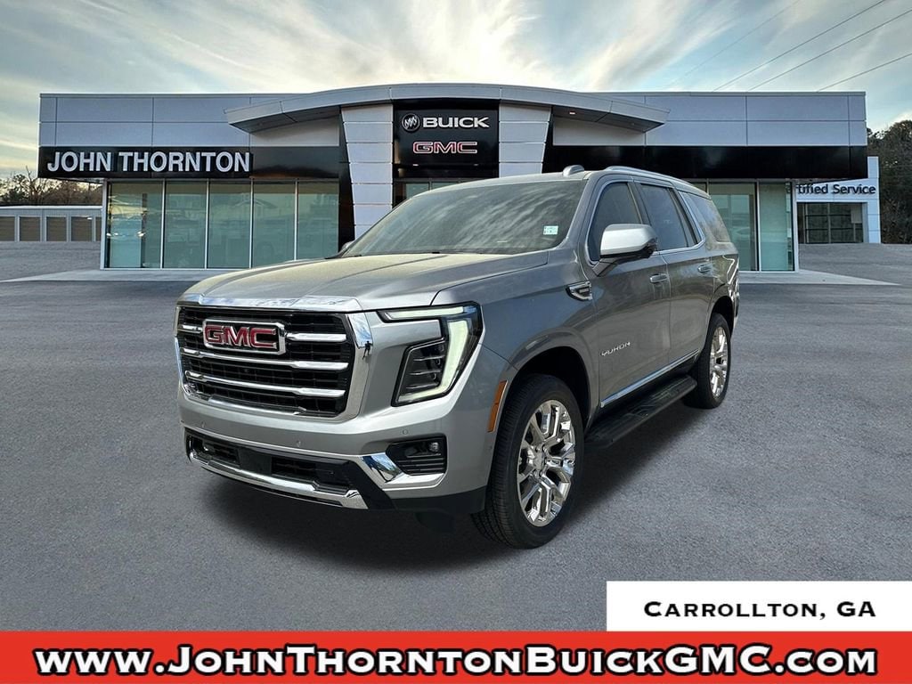 2026 GMC Yukon Elevation21/26 City/Highway MPGSterling Metallic 2026 GMC Yukon Elevation RWD 10-Speed Automatic with Overdrive 3.0L I6We are your premier Carrollton, GA Cadillac dealership. John Thornton Cadillac Inc. Is family owned, and it is our goal to provide you with an excellent purchase and ownership experience. We also proudly serve Douglasville Cadillac customers. Whether you're searching for a new or used car near Douglasville or Bremen, researching financing options, or looking for a quick quote on a car, truck, or SUV, the friendly, yet professional staff at our Carrollton Cadillac dealership is ready to provide you with all the help you need. We are proud to serve Bremen Cadillac customers. We have served as your premier Cadillac dealer for the entire West Georgia area for over 45 years. Floor Liner Package (1st and 2nd Rows All-Weather Floor Liners, 3rd Row All-Weather Floor Liners, and All-Weather Cargo Mat), Max Trailering Package (Blind Zone Steering Assist with Trailering, Extra Capacity Cooling System, Hitch View, Integrated Trailer Brake Controller, and Smart Trailer Integration Indicator), Preferred Equipment Group 4SA, Super Cruise and Trailering Package (Driver Attention Assist and Super Cruise), 1.5 KW Heater/Defrost Air System, 10 Speakers, 22 Bright Split-Spoke Wheels, 250 Amps Alternator, 3.23 Rear Axle Ratio, 3rd row seats: split-bench, 4-Wheel Disc Brakes, 850 Cold-Cranking Amps Battery, ABS brakes, Air Conditioning, Alloy wheels, AM/FM radio: SiriusXM with 360L, Apple CarPlay/Android Auto, Audio memory, Auto High-beam Headlights, Auto-dimming door mirrors, Auto-dimming Rear-View mirror, Automatic temperature control, Bodyside moldings, Bose 10-Speaker Surround with CenterPoint, Brake assist, Bumpers: body-color, Compass, CoreTech/Perforated Leather-Appointed Seating, Delay-off headlights, Diesel B20 Fuel, Driver door bin, Driver vanity mirror, Dual front impact airbags, Dual front side impact airbags, Electronic Stability Control, Emergency communication system: OnStar and GMC connected services capable, Engine Block Heater, Exterior Parking Camera Rear, Four wheel independent suspension, Front anti-roll bar, Front Bucket Seats, Front Center Armrest, Front dual zone A/C, Front fog lights, Front reading lights, Fully automatic headlights, Garage door transmitter, Heated door mirrors, Heated Driver and Front Passenger Seats, Heated front seats, Heated rear seats, Heated steering wheel, Illuminated entry, Low tire pressure warning, Memory seat, Navigation system: GMC Connected Navigation, Occupant sensing airbag, Outside temperature display, Overhead airbag, Overhead console, Panic alarm, Passenger door bin, Passenger vanity mirror, Power door mirrors, Power driver seat, Power Liftgate, Power passenger seat, Power steering, Power windows, Premium Smooth Ride Suspension, Radio: 16.8 Diagonal Premium GMC Infotainment System, Rain sensing wipers, Rear air conditioning, Rear anti-roll bar, Rear reading lights, Rear seat center armrest, Rear window defroster, Rear window wiper, Remote keyless entry, Security system, SiriusXM with 360L, Speed control, Speed-sensing steering, Split folding rear seat, Spoiler, Steering wheel mounted audio controls, Tachometer, Telescoping steering wheel, Tilt steering wheel, Traction control, Trip computer, Turn signal indicator mirrors, Upper and Lower Active Aero Shutters, Variably intermittent wipers, Voltmeter, Wheels: 20 x 9 Machined and Painted, and Wheels: 22 x 9 Steel Interim.