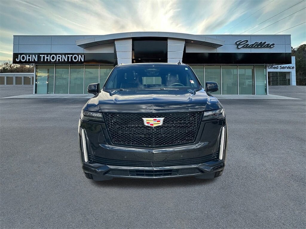 We are your premier Carrollton, GA Cadillac dealership. John Thornton Cadillac Inc. Is family owned, and it is our goal to provide you with an excellent purchase and ownership experience. We also proudly serve Douglasville Cadillac customers. Whether you're searching for a new or used car near Douglasville or Bremen, researching financing options, or looking for a quick quote on a car, truck, or SUV, the friendly, yet professional staff at our Carrollton Cadillac dealership is ready to provide you with all the help you need. We are proud to serve Bremen Cadillac customers. We have served as your premier Cadillac dealer for the entire West Georgia area for over 45 years. Preferred Equipment Group 1SH (Adaptive Cruise Control, AKG Studio Reference 36-Speaker Audio System, Automatic Seat Belt Tightening, Automatic Stop/Start, Body-Color Door Handles, Door Lock & Latch Shields, Electronic Limited-Slip Differential, Enhanced Automatic Emergency Braking, Enhanced Automatic Parking Assist, Floor Console w/Covered Storage, Front Auxiliary 12-volt Power Outlet, Glass Breakage Sensor, Hitch Guidance w/Hitch View, Integrated Trailer Brake Controller, Platinum Interior Trim, Power Panoramic Tilt-Sliding Sunroof, Rear Camera Mirror, Rear Camera Mirror Washer, Rear Cross Traffic Alert, Rear Seat Entertainment System, Reconfigurable Full-Color Head-Up Display, Reverse Automatic Braking, Running Board Assist Steps, Smart Trailer Integration Indicator, Start/Stop System Disable Button, Theft-Deterrent Alarm System, Trailer Side Blind Zone Alert, Vehicle Inclination Sensor, and Vehicle Interior Movement Sensor), Touring Package (Air Ride Adaptive Suspension, Illuminating Front & Rear Sill Plates, and Soft Closing Front & Rear Doors), 4WD, Jet Black Leather, 1.5 kW Heater/Defrost Air System, 16.9 Diagonal OLED Infotainment Screen, 2-Presets Memory For Driver Seat Adjuster, 3.23 Axle Ratio, 3rd row seats: split-bench, 4-Way Power Driver Lumbar Seat Adjuster, 4-Way Power Front Passenger Lumbar Seat Adjuster, 4-Wheel Disc Brakes, 8-Way Power Driver Seat Adjuster, 8-Way Power Front Passenger Seat Adjuster, A/V remote, ABS brakes, Adaptive suspension, Air Conditioning, Alloy wheels, AM/FM radio: SiriusXM with 360L, Apple CarPlay/Android Auto, Audio memory, Auto High-beam Headlights, Auto tilt-away steering wheel, Auto-dimming door mirrors, Auto-dimming Rear-View mirror, Automatic temperature control, Brake assist, Bumpers: body-color, Compass, Delay-off headlights, Door auto-latch, Driver door bin, Driver vanity mirror, Dual front impact airbags, Dual front side impact airbags, Electronic Stability Control, Emergency communication system: OnStar and Cadillac connected services capable, Engine Block Heater, Four wheel independent suspension, Front anti-roll bar, Front Bucket Seats, Front Center Armrest w/Storage, Front dual zone A/C, Front reading lights, Full Semi-Aniline Leather Seats, Fully automatic headlights, Garage door transmitter, Genuine wood console insert, Genuine wood dashboard insert, Genuine wood door panel insert, HD Radio, Headphones, Heads-Up Display, Heated & Ventilated Driver & Front Passenger Seats, Heated door mirrors, Heated Driver & Front Passenger Seats, Heated front seats, Heated rear seats, Heated steering wheel, Illuminated entry, Leather steering wheel, Low tire pressure warning, Magnetic Ride Control Suspension, Memory seat, Navigation System, Not Equipped w/2nd Row Express-Up/Down Windows, Not Equipped w/Steering Column Lock, Not Equipped w/Super Cruise, Occupant sensing airbag, Outside temperature display, Overhead airbag, Overhead console, Panic alarm, Passenger door bin, Passenger vanity mirror, Power door mirrors, Power driver seat, Power Liftgat