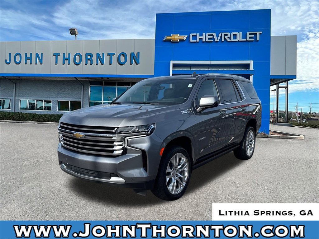 GO WEST to John Thornton Chevrolet, Celebrating 60 Years, Selling Chevy since 1957! Thank you for your interest in John Thornton Chevrolet! We happily serve Lithia Springs, Douglasville, Smyrna, Marietta, Kennesaw, Viningâs, Atlanta, Dallas, Acworth, Villa Rica and proud to be your Chevrolet Dealer for all of West Georgia by providing quality automotive services and unrivaled customer service. Advanced Trailering Package (Advanced Trailering System, Hitch Guidance w/Hitch View, Integrated Trailer Brake Controller, and Trailer Side Blind Zone Alert), Max Trailering Package (Extra Capacity Cooling System), Preferred Equipment Group 3LZ (15 Diagonal Multi-Color Head-Up Display, 1st & 2nd Row Color-Keyed Carpeted Floor Mats, 2 USB Data Ports, 2-Speed Active Electronic AutoTrac Transfer Case, 3rd Row 60/40 Power-Folding Split-Bench Seat, Automatic Heated Steering Wheel, Bright Front & Rear Door Sill Plates, Chrome Door Handles w/Body-Color Strip, Color-Keyed Carpeting Floor Covering, Driver & Front Outboard Passenger Airbags, Dual Exhaust System, Enhanced Driver Information Center, Floor Console w/Storage Area, Front & Rear Park Assist, Hands-Free Rear Power Programmable Liftgate, HD Radio, HD Surround Vision, Heated 2nd Row Outboard Seats, Hill Descent Control, Infotainment Display, Inside Rearview Auto-Dimming Rear Camera Mirror, Lane Change Alert w/Side Blind Zone Alert, Lane Keep Assist w/Lane Departure Warning, Leather-Wrapped Steering Wheel, LED Daytime Running Lamps, Memory Settings, Outside Heated Power-Adjustable Mirrors, Power Release 2nd Row Bucket Seats, Power Tilt & Telescopic Steering Column, Rear Camera Mirror Washer, Rear Cross Traffic Alert, Rear Pedestrian Alert, Remote Start, Safety Alert Seat, SiriusXM NavTraffic, SiriusXM Radio w/360L, and Universal Home Remote), Premium Package (Adaptive Cruise Control, Dual-Pane Power Panoramic Sunroof, Enhanced Automatic Emergency Braking, and Power-Retractable Assist Steps), 4WD, Jet Black Leather, 10 Speakers, 12-Way Power Driver & Passenger Seat Adjusters, 3.23 Rear Axle Ratio, 3rd row seats: split-bench, 4-Wheel Disc Brakes, ABS brakes, Adaptive suspension, Air Conditioning, Alloy wheels, AM/FM radio: SiriusXM with 360L, Apple CarPlay/Android Auto, Auto High-beam Headlights, Auto-dimming door mirrors, Auto-dimming Rear-View mirror, Auto-leveling suspension, Automatic temperature control, Bose 10-Speaker Centerpoint Surround Audio Sys Ft, Brake assist, Bumpers: body-color, Compass, Delay-off headlights, Driver door bin, Driver vanity mirror, Dual front impact airbags, Dual front side impact airbags, Electronic Stability Control, Emergency communication system: OnStar and Chevrolet connected services capable, Four wheel independent suspension, Front anti-roll bar, Front Bucket Seats, Front Center Armrest, Front dual zone A/C, Front High-Back Reclining Bucket Seats, Front reading lights, Fully automatic headlights, Garage door transmitter, Heads-Up Display, Heated & Ventilated Driver & Front Passenger Seats, Heated door mirrors, Heated Driver & Front Passenger Seats, Heated front seats, Heated rear seats, Heated steering wheel, Illuminated entry, Leather steering wheel, Low tire pressure warning, Magnetic Ride Control Suspension, Memory seat, Navigation System, Occupant sensing airbag, Outside temperature display, Overhead airbag, Overhead console, Panic alarm, Passenger door bin, Passenger vanity mirror, Perforated Leather Seat Trim, Power door mirrors, Power driver seat, Power Liftgate, Power passenger seat, Power steering, Power windows, Premium audio system: Chevrolet Infotainment 3, Radio: Chevrolet Infotainment 3 Premium System, Rain sensing wipers, Rear air conditioning, Rear anti-roll bar, Rear reading lights, Rear Seat M