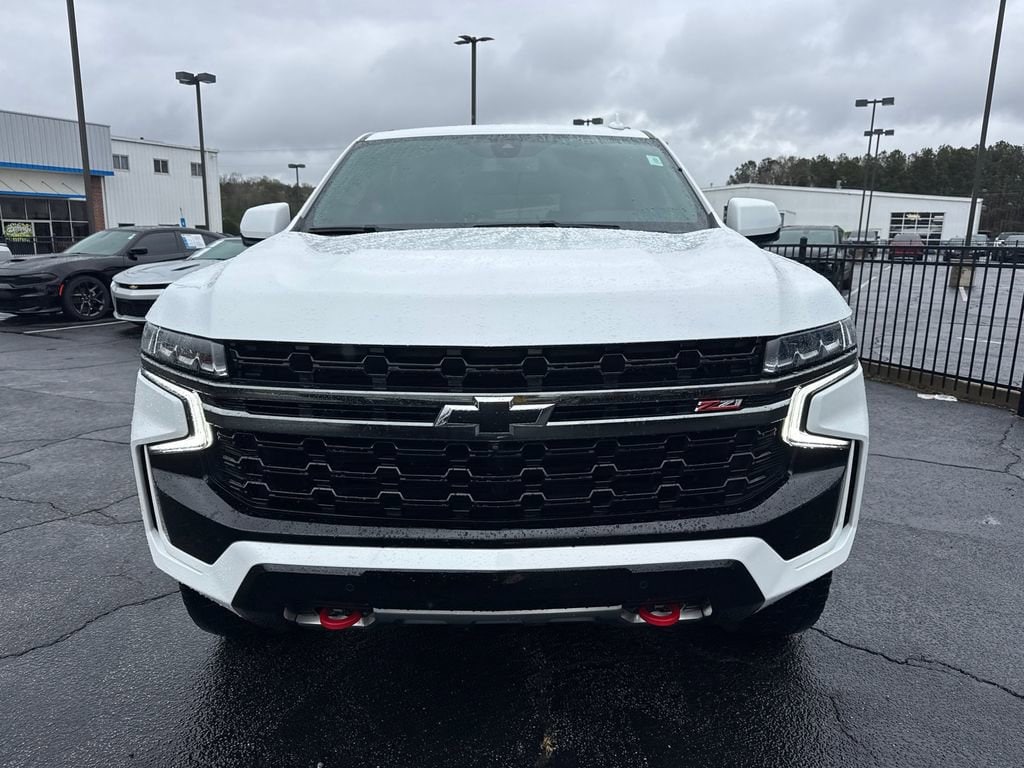 Thank you for considering this beautiful 2022 Chevrolet Tahoe Z71 finished in stunning Summit White with Black Leather. GO WEST to John Thornton Chevrolet, Celebrating 60 Years, Selling Chevy since 1957! Thank you for your interest in John Thornton Chevrolet! We happily serve Lithia Springs, Douglasville, Smyrna, Marietta, Kennesaw, Viningâs, Atlanta, Dallas, Acworth, Villa Rica and proud to be your Chevrolet Dealer for all of West Georgia by providing quality automotive services and unrivaled customer service. Advanced Trailering Package (Hitch Guidance w/Hitch View, Integrated Trailer Brake Controller, and Smart Trailer Integration Indicator), Driver Alert Package (Lane Change Alert w/Side Blind Zone Alert and Rear Cross Traffic Alert), Luxury Package (2nd Row Pwr Release 60/40 Split-Folding Bench Seat, 3rd Row 60/40 Power-Folding Split-Bench Seat, HD Surround Vision, Heated 2nd Row Outboard Seats, Heated Steering Wheel, Memory Settings, Outside Heated Power-Adjustable Mirrors, Power Tilt & Telescopic Steering Column, and Rear Pedestrian Alert), Max Trailering Package (Extra Capacity Cooling System), Preferred Equipment Group 2Z7 (1st & 2nd Row Color-Keyed Carpeted Floor Mats, 2-Speed Active Electronic AutoTrac Transfer Case, Auto-Dimming Inside Rear-View Mirror, Automatic Stop/Start, Black Tubular Assist Steps, Bose 9-Speaker Stereo Audio System Feature, Bright Front & Rear Door Sill Plates, Color-Keyed Carpeting Floor Covering, Driver & Front Outboard Passenger Airbags, Enhanced Driver Information Center, Floor Console w/Storage Area, Front High-Approach Angle Fascia, Hands-Free Rear Power Programmable Liftgate, Hill Descent Control, Infotainment Display, Leather-Wrapped Steering Wheel, LED Daytime Running Lamps, Memory Settings for Driver, Red Horizontal-Mounted Recovery Hooks, Remote Start, SiriusXM Radio w/360L, Start/Stop System Disable Button, Universal Home Remote, and Wireless Charging), 4WD, Black Leather, 10-Way Power Driver & Passenger Seat Adjusters, 3.23 Rear Axle Ratio, 3rd row seats: split-bench, 4-Wheel Disc Brakes, 9 Speakers, ABS brakes, Air Conditioning, Alloy wheels, AM/FM radio: SiriusXM with 360L, Apple CarPlay/Android Auto, Auto High-beam Headlights, Auto-dimming Rear-View mirror, Automatic temperature control, Brake assist, Bumpers: body-color, Compass, Delay-off headlights, Driver door bin, Driver vanity mirror, Dual front impact airbags, Dual front side impact airbags, Electronic Stability Control, Emergency communication system: OnStar and Chevrolet connected services capable, Four wheel independent suspension, Front anti-roll bar, Front Bucket Seats, Front Center Armrest, Front dual zone A/C, Front High-Back Reclining Bucket Seats, Front reading lights, Fully automatic headlights, Garage door transmitter, Heated door mirrors, Heated Driver & Front Passenger Seats, Heated front seats, Illuminated entry, Leather steering wheel, Leather-Appointed Seat Trim, Low tire pressure warning, Memory seat, Navigation System, Not Equipped w/Front & Rear Park Assist, Not Equipped w/Steering Column Lock, Occupant sensing airbag, Outside temperature display, Overhead airbag, Overhead console, Panic alarm, Passenger door bin, Passenger vanity mirror, Power door mirrors, Power driver seat, Power Liftgate, Power passenger seat, Power Release 2nd Row Bucket Seats, Power steering, Power windows, Premium audio system: Chevrolet Infotainment System 3, Premium Smooth Ride Suspension, Radio: Chevrolet Infotainment 3 Premium System, Rain sensing wipers, Rear air conditioning, Rear anti-roll bar, Rear reading lights, Rear seat center armrest, Rear window defroster, Rear window wiper, Remote keyless entry, Roof rack: rails only, Security system, Speed control, Speed-sensing steering, Split folding rear seat, Spoiler, Steering wheel mounted audio controls, Tachometer, Telescoping steering wheel, Tilt steering wheel, Traction control, Trip computer, Variably intermittent wipers, Voltmeter, and Wheels: 20 x 9 M