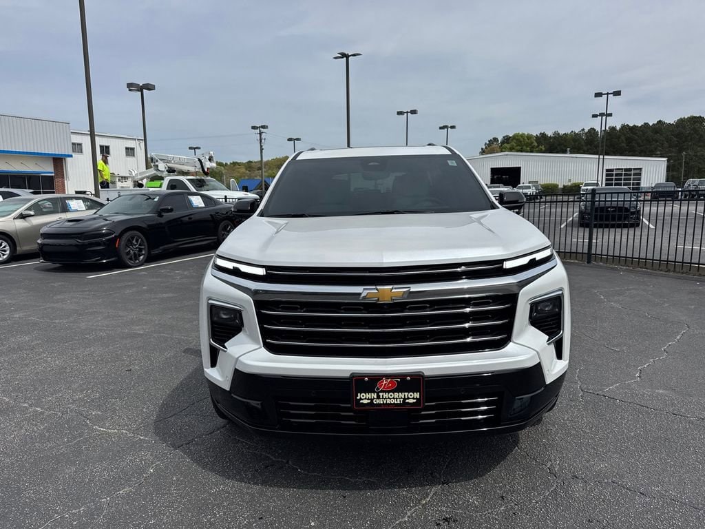 GO WEST to John Thornton Chevrolet, Celebrating 60 Years, Selling Chevy since 1957! Thank you for your interest in John Thornton Chevrolet! We happily serve Lithia Springs, Douglasville, Smyrna, Marietta, Kennesaw, Viningâs, Atlanta, Dallas, Acworth, Villa Rica and proud to be your Chevrolet Dealer for all of West Georgia by providing quality automotive services and unrivaled customer service. Preferred Equipment Group 1LZ, 12 Speakers, 3rd row seats: split-bench, 4-Wheel Disc Brakes, 6-Way Power Front Passenger Seat Adjuster, 8-Way Power Driver Seat Adjuster, ABS brakes, Air Conditioning, Alloy wheels, AM/FM radio: SiriusXM with 360L, Apple CarPlay/Android Auto, Auto High-beam Headlights, Auto tilt-away steering wheel, Auto-dimming door mirrors, Automatic temperature control, Bose Premium 12-Speaker Audio System Feature, Brake assist, Bumpers: body-color, Child-Seat-Sensing Airbag, Compass, Delay-off headlights, Driver 4-Way Power Lumbar Seat Adjuster, Driver door bin, Driver vanity mirror, Dual front impact airbags, Dual front side impact airbags, Electronic Stability Control, Emergency communication system: OnStar, Exterior Parking Camera Rear, Four wheel independent suspension, Front anti-roll bar, Front Bucket Seats, Front Center Armrest, Front dual zone A/C, Front Passenger 4-Way Power Lumbar Seat Adjuster, Front reading lights, Fully automatic headlights, Garage door transmitter, Heated door mirrors, Heated front seats, Heated rear seats, Heated steering wheel, Illuminated entry, Low tire pressure warning, Memory seat, Mobile Service Plus, Navigation System, Occupant sensing airbag, Outside temperature display, Overhead airbag, Overhead console, Panic alarm, Passenger door bin, Passenger vanity mirror, Perforated Leather-Appointed Seat Trim, Power door mirrors, Power driver seat, Power Dual Glass Panoramic Sliding Sunroof, Power Liftgate, Power passenger seat, Power steering, Power windows, Radio data system, Radio: : Audio System w/17.7 Diagonal Display, Rain sensing wipers, Rear air conditioning, Rear anti-roll bar, Rear reading lights, Rear window defroster, Rear window wiper, Remote keyless entry, Security system, SiriusXM with 360L Trial Subscription, Speed control, Speed-sensing steering, Spoiler, Steering wheel memory, Steering wheel mounted audio controls, Tachometer, Telescoping steering wheel, Tilt steering wheel, Traction control, Trip computer, Turn signal indicator mirrors, Variably intermittent wipers, Ventilated front seats, Voltmeter, and Wheels: 22 High-Gloss Black Aluminum.