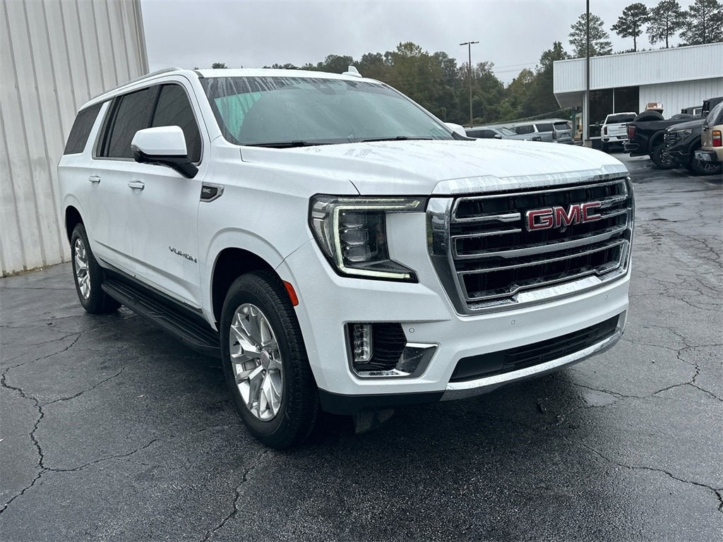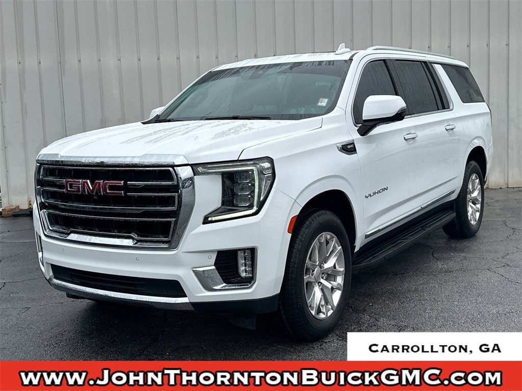 We are your premier Carrollton, GA Cadillac dealership. John Thornton Cadillac Inc. Is family owned, and it is our goal to provide you with an excellent purchase and ownership experience. We also proudly serve Douglasville Cadillac customers. Whether you're searching for a new or used car near Douglasville or Bremen, researching financing options, or looking for a quick quote on a car, truck, or SUV, the friendly, yet professional staff at our Carrollton Cadillac dealership is ready to provide you with all the help you need. We are proud to serve Bremen Cadillac customers. We have served as your premier Cadillac dealer for the entire West Georgia area for over 45 years. Preferred Equipment Group 4SA (2 Presets For Power Driver Seat, Automatic Stop/Start, Bose 9-Speaker Stereo Audio System Feature, Bright Chrome Bodyside Moldings, Bright Front & Rear Door Sill Plates, Chrome Door Handles w/Body-Color Strip, Hands-Free Power Programmable Rear Liftgate, Heated & Ventilated Driver & Front Passenger Seats, Heated Driver & Front Passenger Seats, Inside Rear-View Auto-Dimming Mirror, Safety Alert Seat, Start/Stop System Disable Button, Universal Home Remote, and Wireless Charging), SLT Luxury Package (2 Presets For Outside Rearview Mirrors, 3rd Row 60/40 Power-Folding Split-Bench Seat, HD Surround Vision, Heated 2nd Row Outboard Position Seats, Heated Steering Wheel, Outside Heated Power-Adjustable Mirrors, Power Release 2nd Row 60/40 Split-Folding Bench Seat, Power Tilt & Telescopic Steering Column, and Rear Pedestrian Alert), SLT Premium Package (Dual-Pane Panoramic Power Sunroof), 20 x 9 Polished Aluminum Wheels, 3.23 Rear Axle Ratio, 3rd row seats: split-bench, 4-Wheel Disc Brakes, 9 Speakers, ABS brakes, Air Conditioning, Alloy wheels, AM/FM radio: SiriusXM with 360L, AM/FM Stereo, Apple CarPlay/Android Auto, Auto High-beam Headlights, Auto-dimming Rear-View mirror, Automatic Emergency Braking, Automatic temperature control, Bodyside moldings, Brake assist, Bumpers: body-color, Compass, Delay-off headlights, Driver door bin, Driver vanity mirror, Dual front impact airbags, Dual front side impact airbags, Electronic Stability Control, Emergency communication system: OnStar and GMC Connected Services capable, Following Distance Indicator, Forward Collision Alert, Four wheel independent suspension, Front & Rear Park Assist, Front anti-roll bar, Front Bucket Seats, Front Center Armrest, Front dual zone A/C, Front fog lights, Front Pedestrian Braking, Front reading lights, Fully automatic headlights, Garage door transmitter, Heated door mirrors, Heated front seats, Illuminated entry, IntelliBeam Automatic High Beam On/Off, Lane Change Alert w/Side Blind Zone Alert, Lane Keep Assist w/Lane Departure Warning, Leather steering wheel, Low tire pressure warning, Memory seat, Navigation System, Not Equip w/Ventilated Seat Cushion Blower Motor, Not Equipped w/4-Way Driver & Fr Pass Pwr Lumbar, Not Equipped w/Front & Rear Park Assist, Not Equipped w/Steering Column Lock, Occupant sensing airbag, Outside temperature display, Overhead airbag, Overhead console, Panic alarm, Passenger door bin, Passenger vanity mirror, Perforated Leather-Appointed Seating, Power door mirrors, Power driver seat, Power Liftgate, Power passenger seat, Power Release 2nd Row Bucket Seats, Power steering, Power windows, Premium Smooth Ride Suspension, Rain sensing wipers, Rear air conditioning, Rear anti-roll bar, Rear Cross Traffic Alert, Rear reading lights, Rear seat center armrest, Rear window defroster, Rear window wiper, Remote keyless entry, Roof rack: rails only, Security system, SiriusXM w/360L, Speed control, Speed-sensing steering, Split folding rear seat, Spoiler, Steering wheel mounted audio controls, Tachometer, Telesc