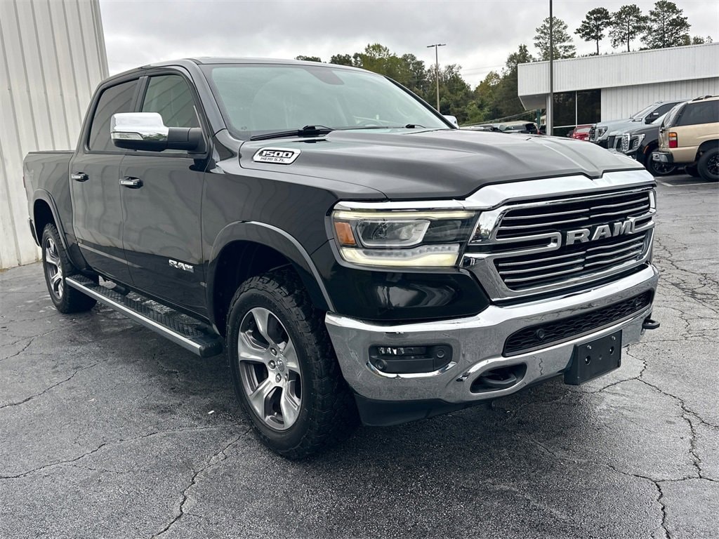 Recent Arrival! Thank you for considering this beautiful 2019 Ram 1500 Laramie finished in stunning Diamond Black Crystal Pearlcoat with Black Leather.Odometer is 51441 miles below market average!15/21 City/Highway MPGWe are your premier Carrollton, GA Cadillac dealership. John Thornton Cadillac Inc. Is family owned, and it is our goal to provide you with an excellent purchase and ownership experience. We also proudly serve Douglasville Cadillac customers. Whether you're searching for a new or used car near Douglasville or Bremen, researching financing options, or looking for a quick quote on a car, truck, or SUV, the friendly, yet professional staff at our Carrollton Cadillac dealership is ready to provide you with all the help you need. We are proud to serve Bremen Cadillac customers. We have served as your premier Cadillac dealer for the entire West Georgia area for over 45 years. Laramie Level 1 Equipment Group (Auto High Beam Headlamp Control, Blind Spot & Cross Path Detection, Foam Bottle Insert (Door Trim Panel), ParkSense Front/Rear Park Assist w/Stop, Rain Sensitive Windshield Wipers, Rear 60/40 Folding Split Recline Seat, Remote Tailgate Release, Single Disc Remote CD Player, and Tailgate Ajar Warning Lamp), Off Road Group (E-Locker Rear Axle, Front Extra HD Shock Absorbers, Hill Descent Control, Off Road Decals, Rear Extra HD Shock Absorbers, and Tow Hooks), Quick Order Package 25H Laramie, #1 Seat Foam Cushion, 1-Yr SiriusXM Guardian Trial, 10 Speakers, 3 Rear Seat Head Restraints, 3.21 Rear Axle Ratio, 3.92 Rear Axle Ratio, 4 Way Front Headrests, 4-Wheel Disc Brakes, 48V Belt Starter Generator, 5-Year SiriusXM Traffic Service, 5-Year SiriusXM Travel Link Service, 8.4 Touchscreen Display, ABS brakes, Adjustable pedals, Air Conditioning, Alloy wheels, AM/FM radio: SiriusXM, Apple CarPlay, Apple CarPlay/Android Auto, Audio memory, Auto-dimming door mirrors, Auto-dimming Rear-View mirror, Automatic temperature control, Brake assist, Bumpers: chrome, Compass, Delay-off headlights, Disassociated Touchscreen Display, Dome Dual LED Reading Lamp, Driver door bin, Driver Seat Memory, Driver vanity mirror, Dual front impact airbags, Dual front side impact airbags, Dual-Pane Panoramic Sunroof, Electronic Stability Control, For Details, Visit DriveUconnect.com, Front anti-roll bar, Front Center Armrest w/Storage, Front dual zone A/C, Front fog lights, Front reading lights, Front Seat Back Map Pockets, Front wheel independent suspension, Fully automatic headlights, Garage door transmitter, Google Android Auto, GPS Antenna Input, GPS Navigation, HD Radio, Heated door mirrors, Heated Front Seats, Heated front seats, Heated Steering Wheel, Heated steering wheel, Illuminated entry, Integrated Center Stack Radio, Leather steering wheel, Leather Trim 40/20/40 Bench Seat, LED Dome/Reading Lamp, Low tire pressure warning, Manufacturer's Statement of Origin, Memory seat, No Satellite Coverage w/HI/AK/PR/VI/GU, Occupant sensing airbag, Outside temperature display, Overhead airbag, Overhead console, Panic alarm, ParkView Rear Back-Up Camera, Passenger door bin, Passenger vanity mirror, Pedal memory, Power 4-Way Driver Lumbar Adjust, Power 4-Way Passenger Lumbar Adjust, Power 8-Way Driver & Passenger Seats, Power door mirrors, Power driver seat, Power passenger seat, Power steering, Power windows, Radio data system, Radio: Uconnect 4 w/8.4 Display, Radio: Uconnect 4C Nav w/8.4 Display, Rear anti-roll bar, Rear seat center armrest, Rear step bumper, Rear Underseat Compartment Storage, Rear window defroster, Remote keyless entry, Security system, SiriusXM Satellite Radio, SiriusXM Traffic Plus, SiriusXM Travel Link, Speed control, Split folding rear seat, Steering wheel mounted audio controls, Tachometer, Telescoping steering wheel, Tilt steering wheel, Traction control, Trailer Brake Control, Trip computer, Turn signal indicator mirrors, Variably intermittent wipers, Ventilated Front Seats, Ventilated