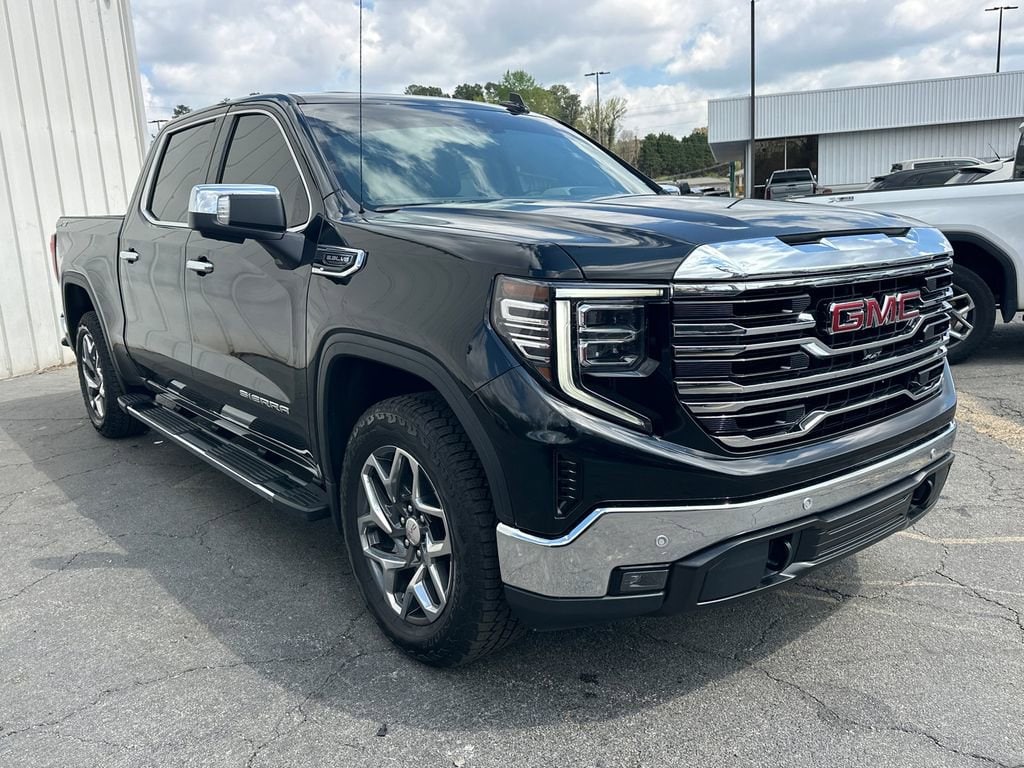 Thank you for considering this beautiful 2023 GMC Sierra 1500 SLT finished in stunning Onyx Black with Dark Walnut/Slate Leather.16/20 City/Highway MPGWe are your premier Carrollton, GA Cadillac dealership. John Thornton Cadillac Inc. Is family owned, and it is our goal to provide you with an excellent purchase and ownership experience. We also proudly serve Douglasville Cadillac customers. Whether you're searching for a new or used car near Douglasville or Bremen, researching financing options, or looking for a quick quote on a car, truck, or SUV, the friendly, yet professional staff at our Carrollton Cadillac dealership is ready to provide you with all the help you need. We are proud to serve Bremen Cadillac customers. We have served as your premier Cadillac dealer for the entire West Georgia area for over 45 years. High Capacity Suspension Package, Preferred Equipment Group 4SA (120-Volt Bed Mounted Power Outlet, 120-Volt Instrument Panel Power Outlet, 170 Amp Alternator, 2 Charge/Data USB Ports, 2 Type-C Charge-Only Rear USB Ports, 6-Speaker Audio System Feature, Auto-Locking Rear Differential, Auxiliary External Transmission Oil Cooler, Chrome Header & Chrome Grille Insert Bars, Color-Keyed Carpeting Floor Covering, Compass, Deep-Tinted Glass, Electric Rear-Window Defogger, Electrical Steering Column Lock, Front Frame-Mounted Black Recovery Hooks, Front Rainsensing Wipers, GMC Connected Access Capable, HD Rear Vision Camera, Keyless Open & Start, LED Cargo Area Lighting, Manual Tilt-Wheel & Telescoping Steering Column, OnStar & GMC Connected Services Capable, Perimeter Lighting, Power Door Locks, Power Front Passenger Windows w/Express Up/Down, Power Front Windows w/Driver Express Up/Down, Power Rear Windows w/Express Down, Push Button Start, Rear Wheelhouse Liners, Remote Vehicle Starter System, SiriusXM w/360L, Steering Wheel Audio Controls, Theft Deterrent System (Unauthorized Entry), Wi-Fi Hotspot Capable, and Wireless Phone Projection), ProGrade Trailering System (Hitch Guidance w/Hitch View, In-Vehicle Trailering App, and Integrated Trailer Brake Controller), Sierra Safety Plus Package (HD Surround Vision, Rear Cross Traffic Braking, Rear Pedestrian Detection, Safety Alert Seat, Trailer Camera Provisions, Trailer Side Blind Zone Alert, and Ultrasonic Front & Rear Park Assist), SLT Convenience Package (2 Charge/Data USB Ports Inside Center Console, Electronic Precision Shift, Floor-Mounted Center Console, Front Bucket Seats, Power Rake & Telescoping Steering Column, Premium Bose 7-Speaker Sound System, Ventilated Driver & Front Passenger Seats, and Wireless Charging), SLT Preferred Package (Adaptive Cruise Control, Heated 2nd Row Outboard Seats, Power Sliding Rear Window w/Rear Defogger, and Universal Home Remote), SLT Premium Plus Package (20 Polished Aluminum Wheels, Chrome Wheel To Wheel Assist Steps, and Spray-On Pickup Bed Liner w/GMC Logo), Standard Suspension Package, Trailering Package (Hitch Guidance), X31 Off-Road & Protection Package (All-Weather Floor Liner (LPO)), X31 Off-Road Package (Dual Exhaust System, Heavy-Duty Air Filter, Hill Descent Control, Off-Road Suspension, and X31 Hard Badge), 10-Speed Automatic, 4WD, Dark Walnut/Slate Leather, 10-Way Power Driver Seat Adjuster w/Lumbar, 10-Way Power Passenger Seat Adjuster w/Lumbar, 3.23 Rear Axle Ratio, 4-Wheel Disc Brakes, 6 Speakers, ABS brakes, Air Conditioning, Alloy wheels, AM/FM radio, Apple CarPlay/Android Auto, Auto High-beam Headlights, Auto-dimming door mirrors, Auto-dimming Rear-View mirror, Automatic Emergency Braking, Automatic temperature control, Brake assist, Buckle to Drive, Bumpers: chrome, Delay-off headlights, Driver door bin, Driver Memory, Driver vanity mirror, Dual front impact airbags, Dual front side impact airbags, Electronic Stability Control, Emergency communication system: OnStar and GMC connected services capable, Following Distance Indicator, Forward Collision Alert, Front 40/20/40 Split-Bench Seat,